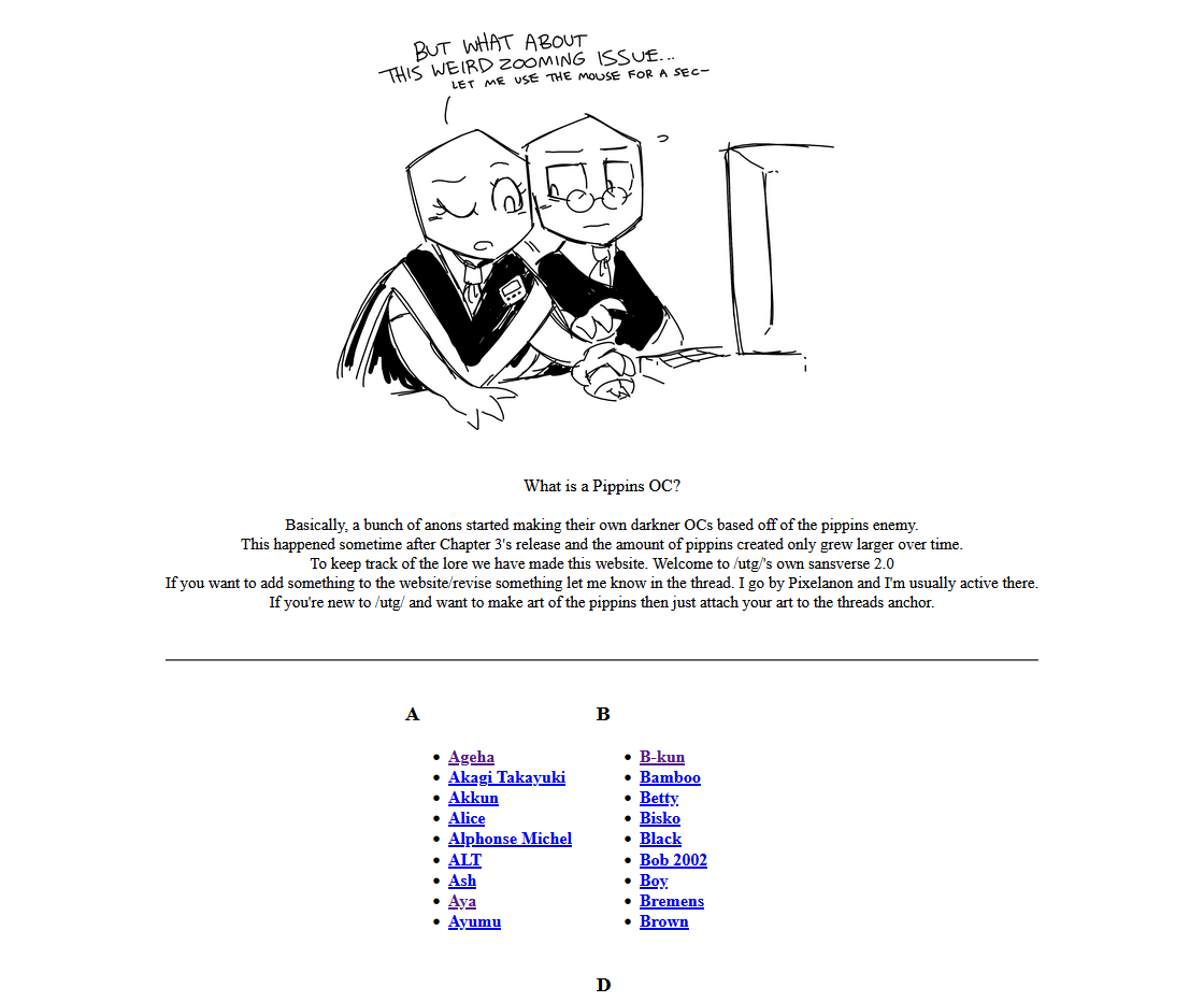 >>554119336>accidentally do something someone else already didthe anons here don't care about copies or anything like that. we're pretty chill when it comes to pippins oc's. Also I'm glad you're interested in them! One of the reasons im making this website in the first place is so new anons can get all caught up