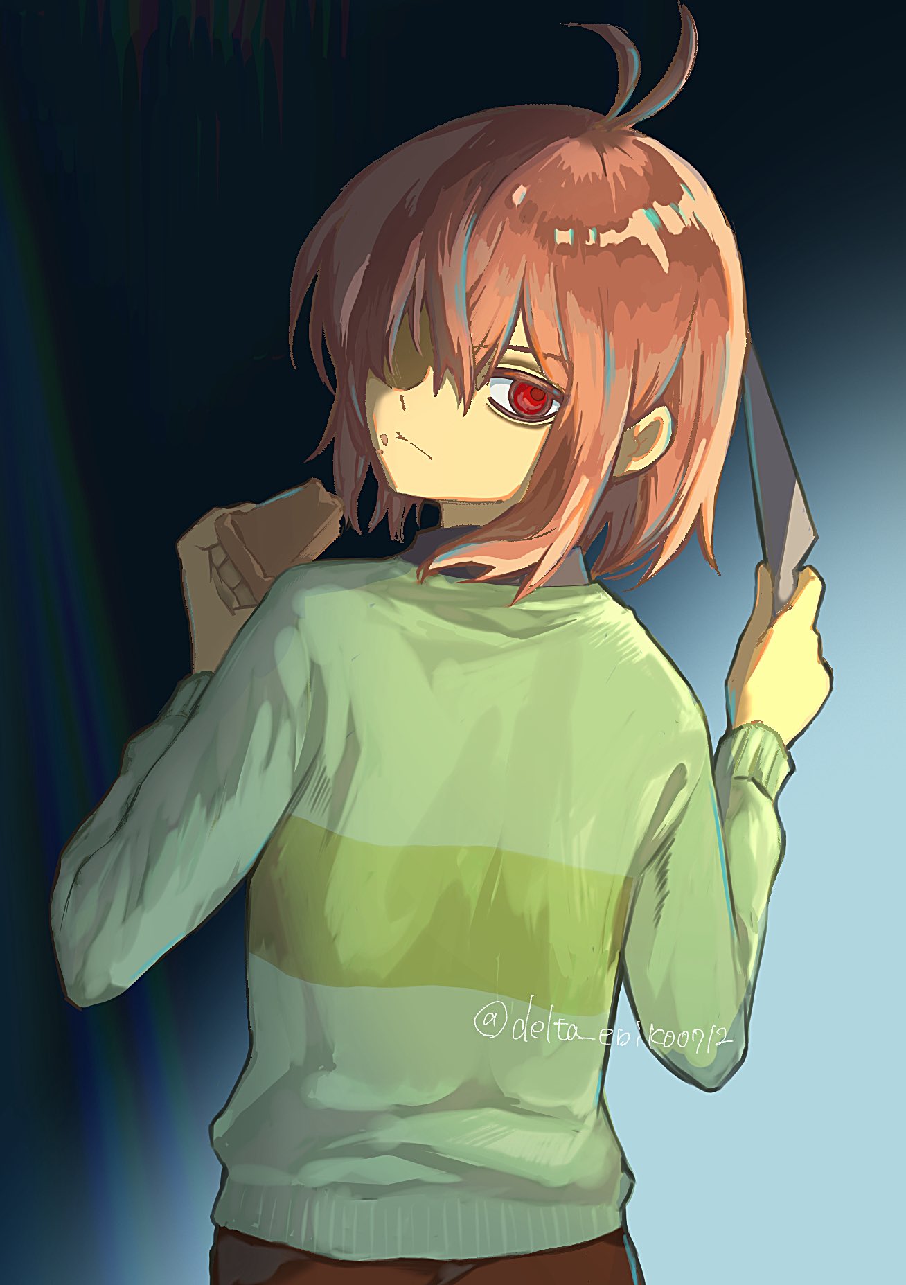 What if the twist is that the incident where Dess hit kris with a "whiffle bat" is a false memory and it's suppressing the reality that the bat was a knife and kris was severely injured or even killed by Dess when this occurred. This explains "blackened knife" (the burned ice-e box was on kris's head), and why kris looks like a corpse in the dark world (because they were somehow kept alive using the red soul)