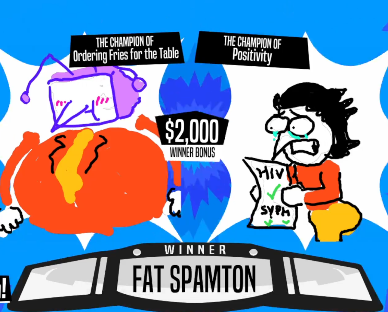 >HE SHOWERS OUR SOULS WITH INCREDIBLE DEALS>AND WITH HEARTY PEEPIS, OUR HEART HE SO STEALS>NO FOOL WOULD BE GREATER>THAN HE WHO DENIES>THAT SPAMTON GIVE ME THE CHANCE TO EARN WILD PRIZE>NOT A CIRCUS CLOWN, WHO'S MORE SICK THAN HE FUNNY>A LOVEABLE SALESMAN, WHO GIVE ME FREE MONEY>YOU MAY ASK, "WHO IS NEXT?">YOU MAY ASK, "WHO WILL BE?">"WHO WILL BE SECRET BOSS OF ADVENTURE NO. 3?">ME DONT KNOWS. AND ME DONT CARES!>ME ONLY CARES ABOUT SPAMTON>THE REST CAN GO UP IN THE AIRS!!Please pay $4.99 to continue the poem.