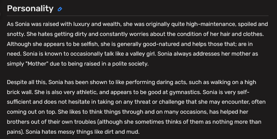 >>554090310Most sonic "fans" don't know what her character is besides having boobs.