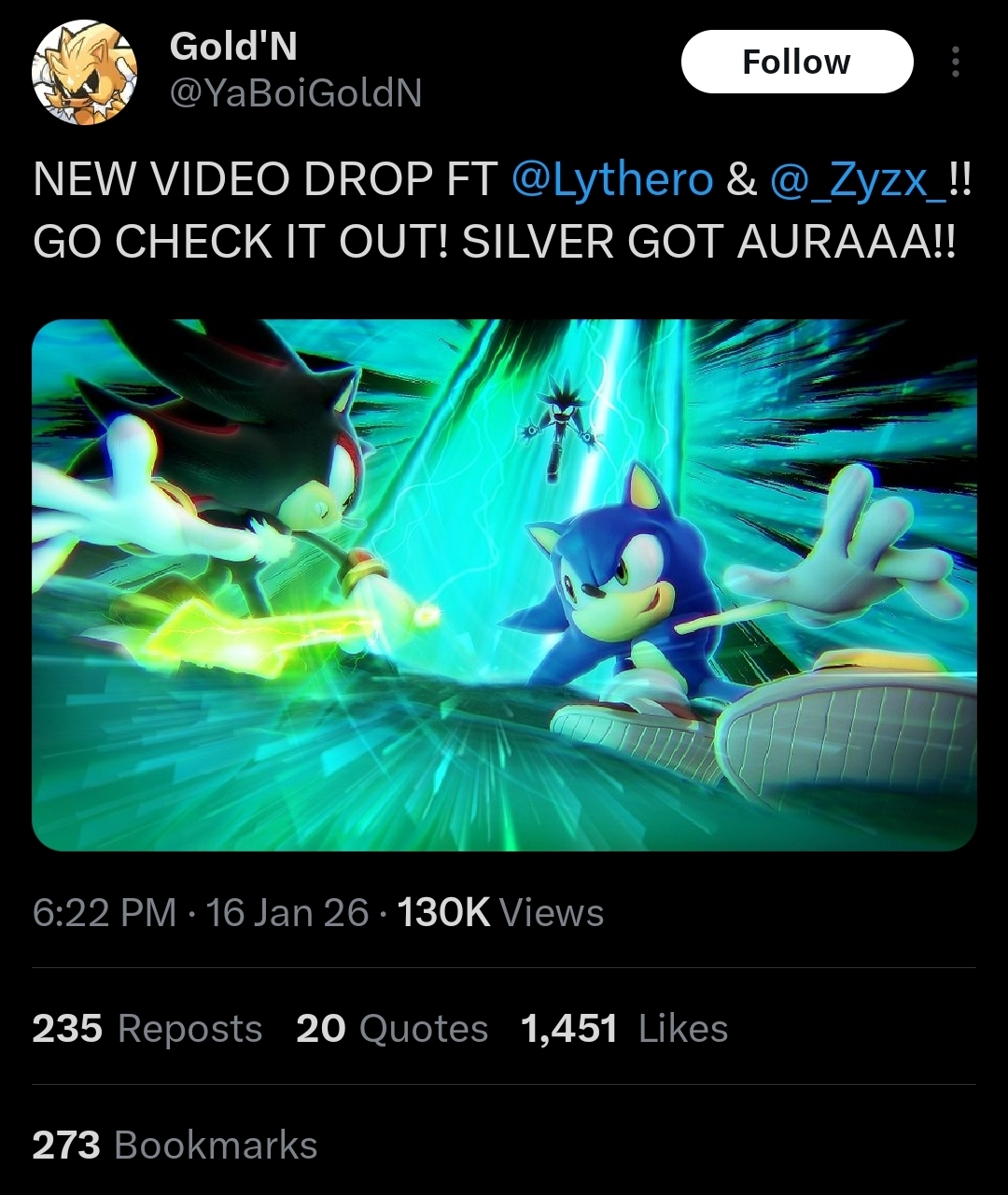 >>554088035Only shadow should have lighting still sonic looks uncool because he is just worse Chadow.Chadow is lighting.Sonic dust in the wind kicked up by the lighting.