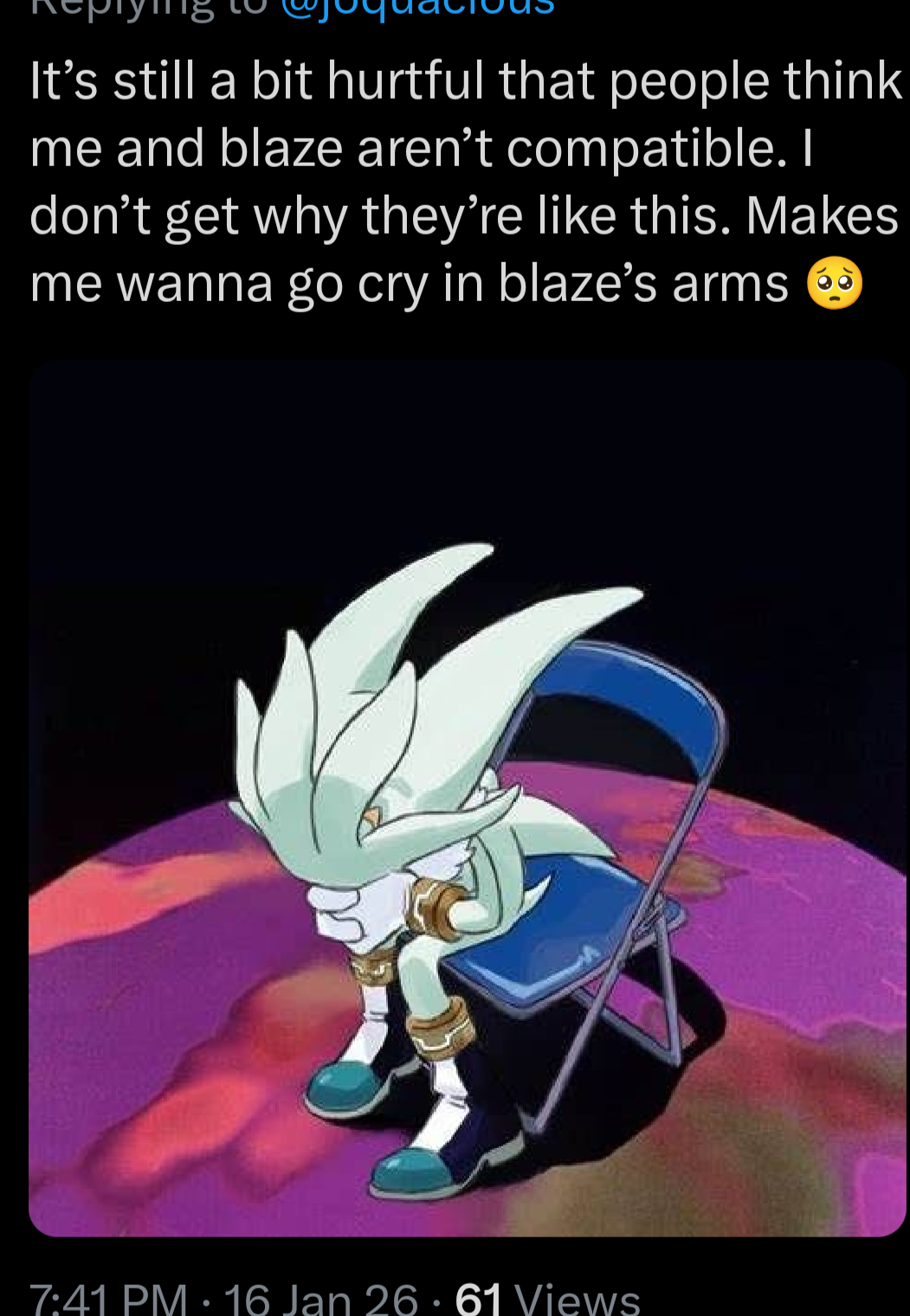 Every fan animation, fangame, and multiple fan ideas with Silver never include Blaze. Silverfags don't want her, it's actually just mentally ill silvazefags trying to psyop people into believing they do. Nakamura loses nothing by dropping Blaze and gains everything by appeasing the demographic that's always asking for more Mephiles and Infinite