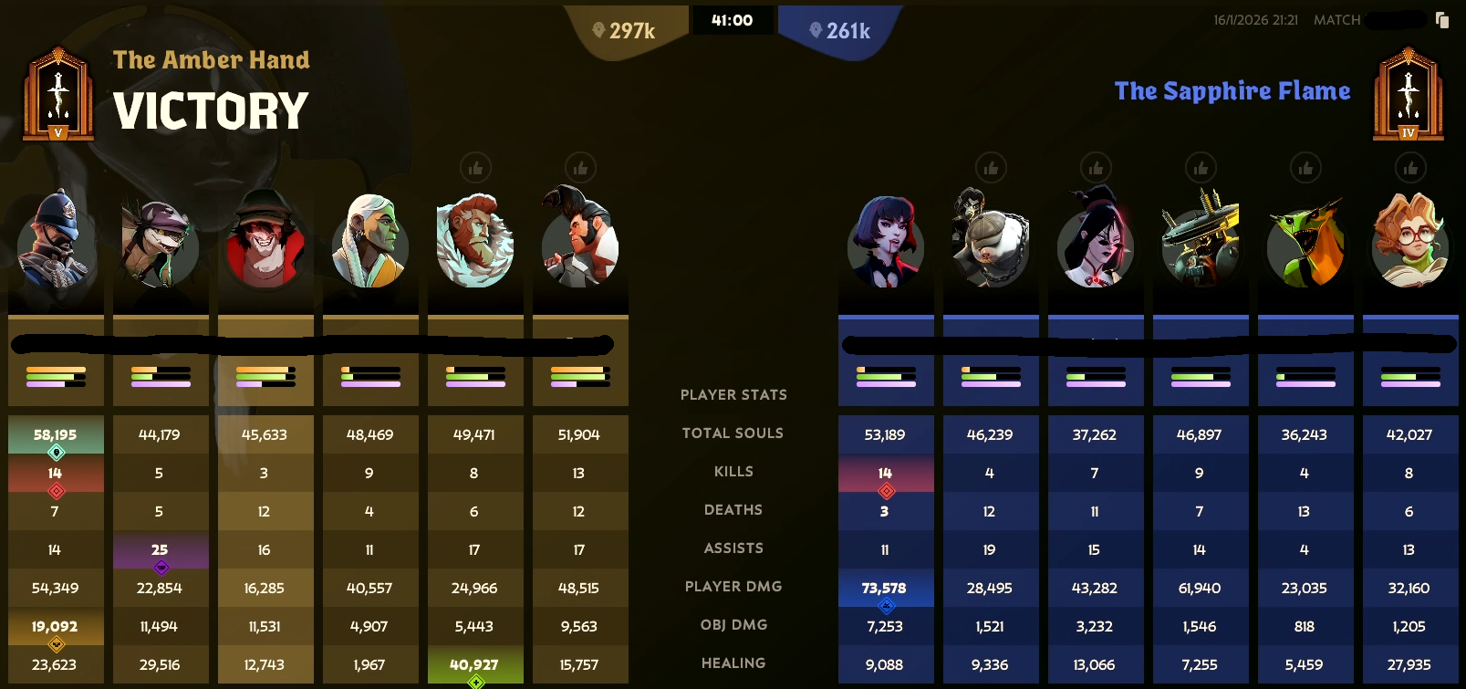 >enemy team buys 2 spellbreakers and 3 spirit resiliences for my sticky bombs>lose>I had 11k more hero damage (36k) than our second highest on the team (25k)Idk man, if I'm doing all the damage after being countered by their items like what can you do lol. Fucking team was useless.