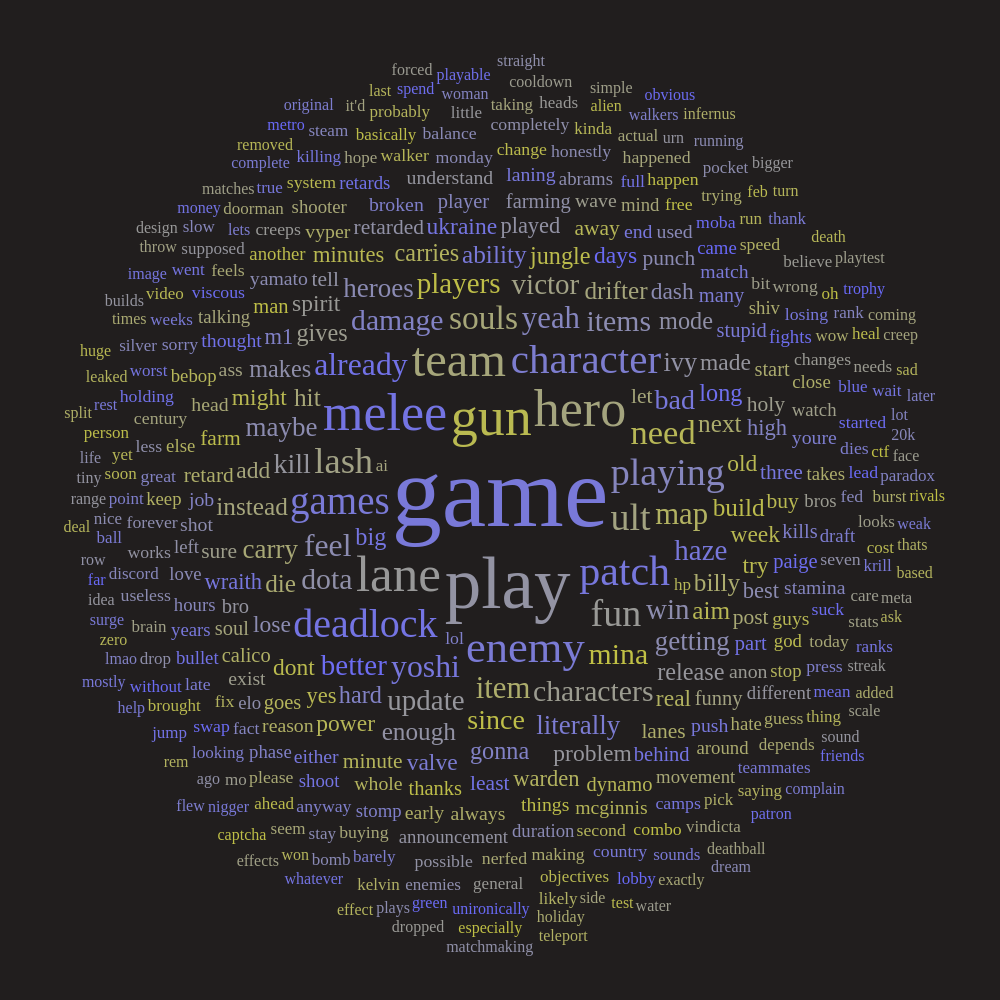 >>554092626this and ive finally learned how to see who group queued in statlocker, sometimes i get a 5 stack that just brawls and blames me for farming