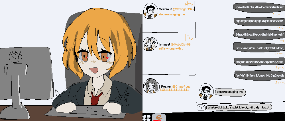 >>554091793this may be schizo but this does seem to be rodions hair color, maybeshe might have the side bangs long