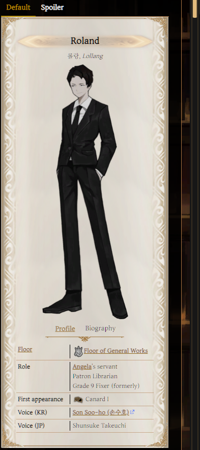 >>554091562>Was there any followup to why the index wanted Rien to emulated Roland so much?we have no ideait's either Hermes thought it was a funny ass joke or they wanted to Rein to be the one to go the Library or maybe Roland defied his fate of dying in the "bad end and they wanted to replicate itor it was clap baitwe won't know for years probably