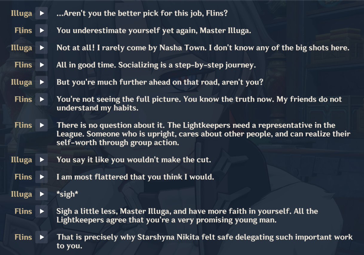 >>554093912Fontaine would've been rated higher if the prior acts weren't so terrible(prison slop). Nod krai overall was just better. All the acts were pretty engaging.