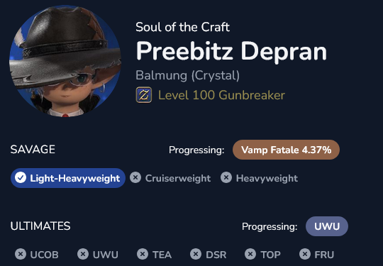 >>554138968I shit you not, the only reason I got to see hell in a cell the first time I did was because I threw every mit I had at a healer to keep them alive during the transition out of adds phase so they could LB3 and most of the party died before we even got to stacks/spreads anywayI have forced so much prog through invulns just so I can see the mechanicsI need to practice sanguine scratch but it's so fucking far into the fight that it's so unlikely I get to see it in any capacity that isn't literally trying to drag people through things that I'm in the wrong mindset to actually learn it by the time I get there