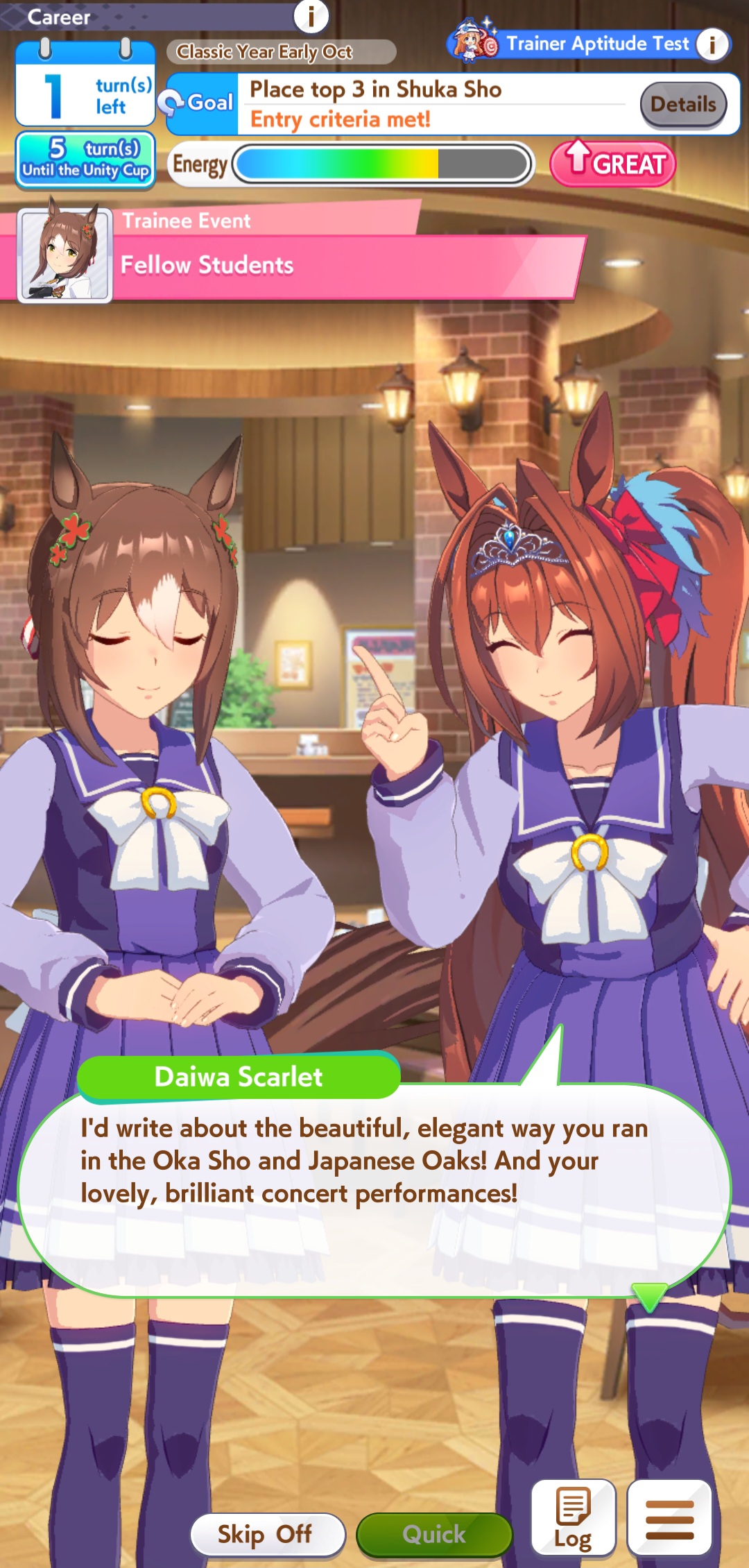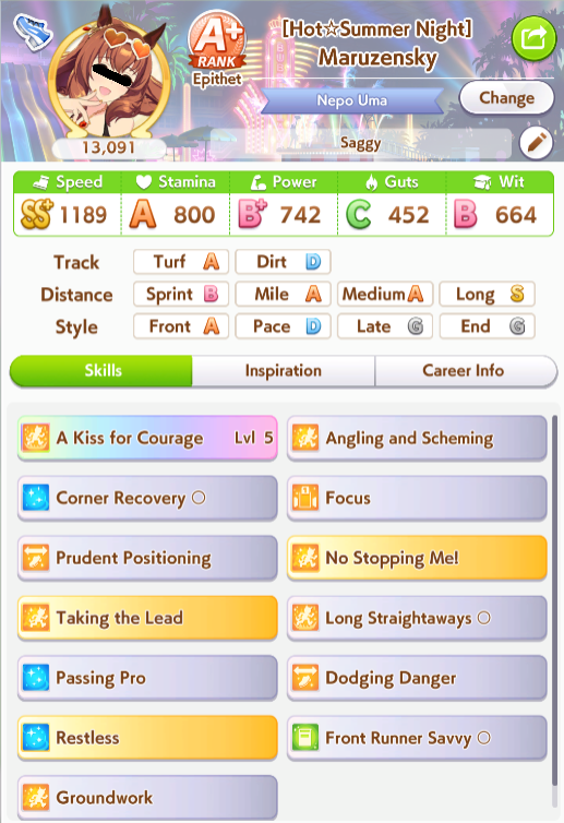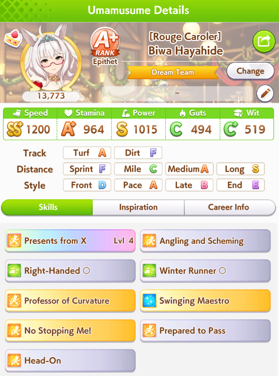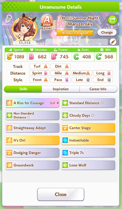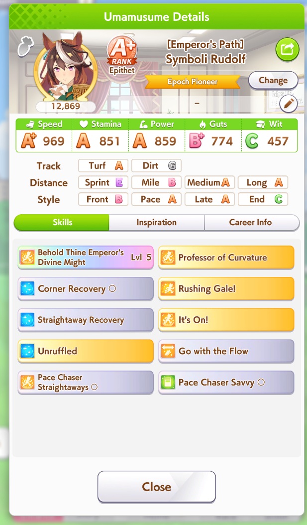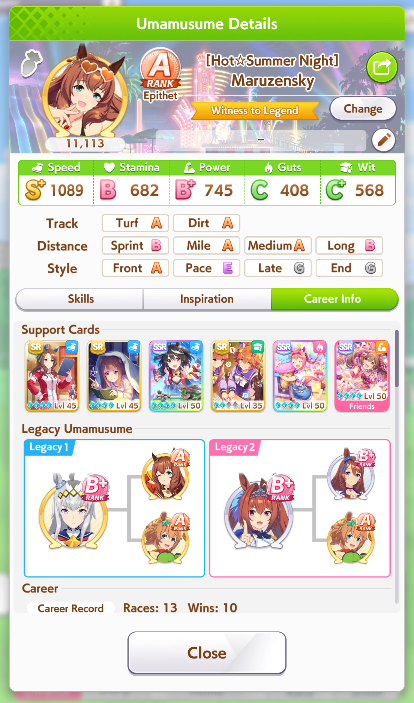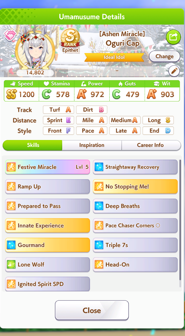 >>554234592>>554234551>>554234625Works good enough she lost the 2 previous races>>554234536>>554234806Thanks, yeah her skills are a bit RNG but it seems consistent enough at least >>554235036I always have to go for a Gold cause I use R Riko and wanna use power spark parents so it was expected>>554235706idk people here said it was good so I buy it and I think ignited speed is good but expensive I had Fast Learner so I bought it