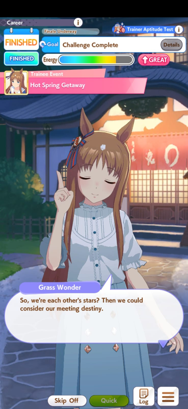 >training Oguri>slow metabolism in the first 4 turns>bad rng with speed sparks>lose to Riko>get to ura finale>slackerThere goes the long S