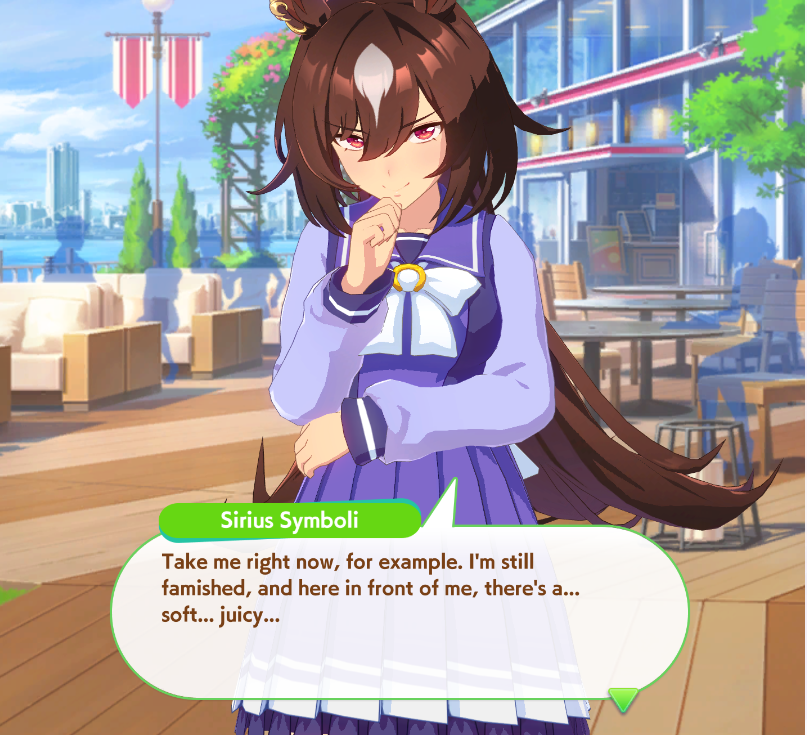 >>554238689It's ironic because fuku's alt has a unique that literally activates when she's "pressured from behind" late race. The anal priestess poster won...