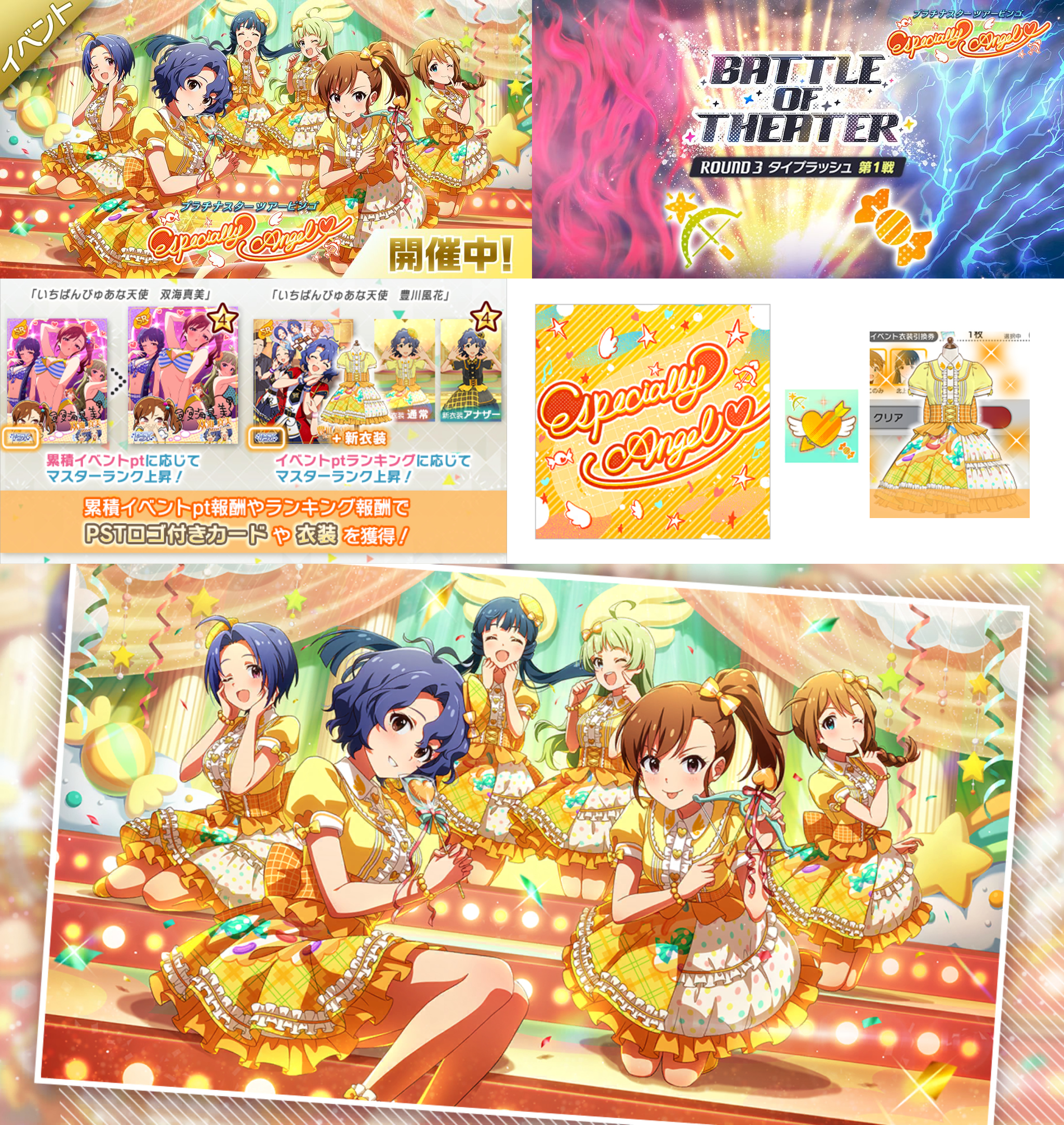 https://idolmaster-official.jp/news/01_17926https://x.com/imasml_theater/status/2012766909712761087https://x.com/imasml_theater/status/2012767157604831450https://x.com/imasml_theater/status/2012767660178579935https://x.com/imasml_theater/status/2012767911941939450MV: https://www.youtube.com/watch?v=tsLSSDaeQ-cSpecial/Another Appeals: https://x.com/DreameR_509/status/2012809705991888972Angel Type. Level 17. 827 notes.https://project-imas.wiki/Especially_Angel%E2%99%A1