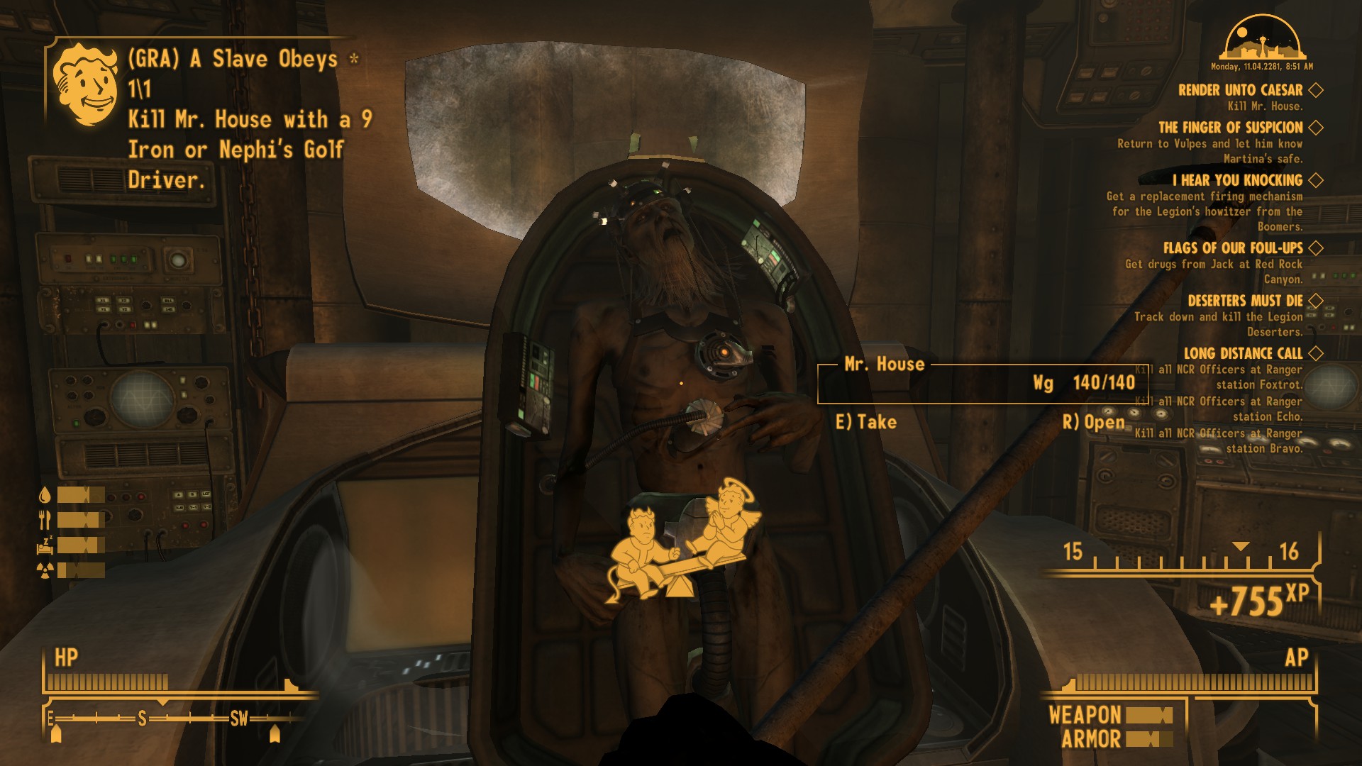 >Level 50 >Still debating whether or not to behead Benny on sight in The Tops >(It would be a definite yes except I like Swank) I might start Lonesome Road first lol