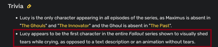 I just caught up to the show and it's amazing how good it is! I decided to launch up fallout 4 and I found out that they made a creation club mod to change what breed your dog is, I immediately bought it. Figured I'd give Bethesda a bit of support for making such an amazing show. How do you guys like it so far?