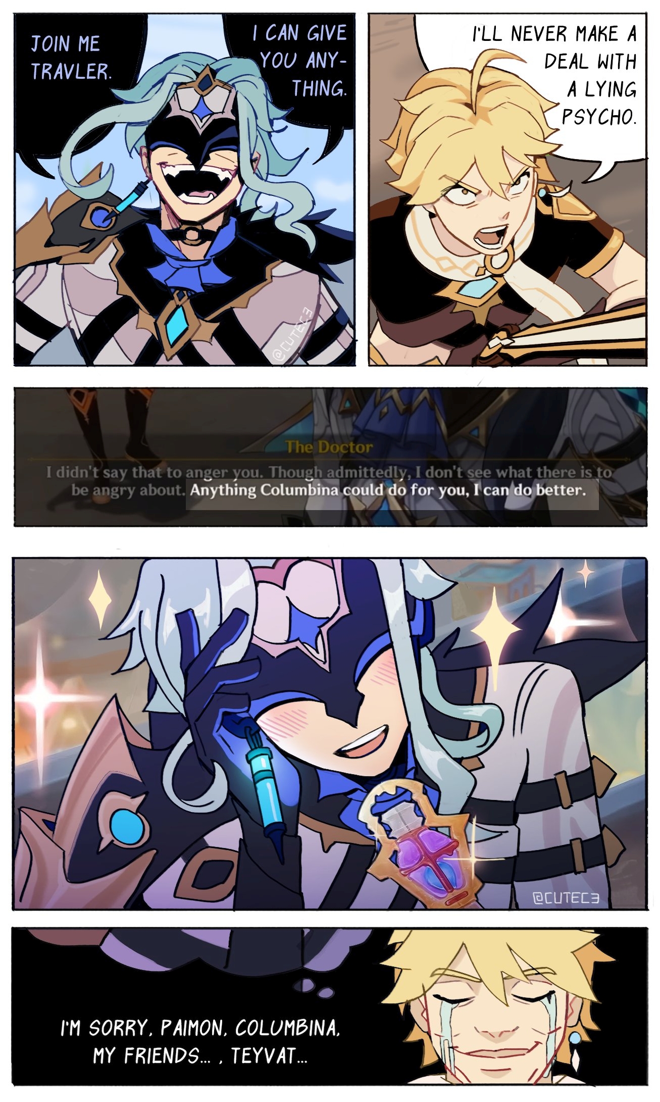 NOt gonna lie... As a straight aetherbro... I wouldve accepted dottore's offer. Anything columbina can do, he can do better...