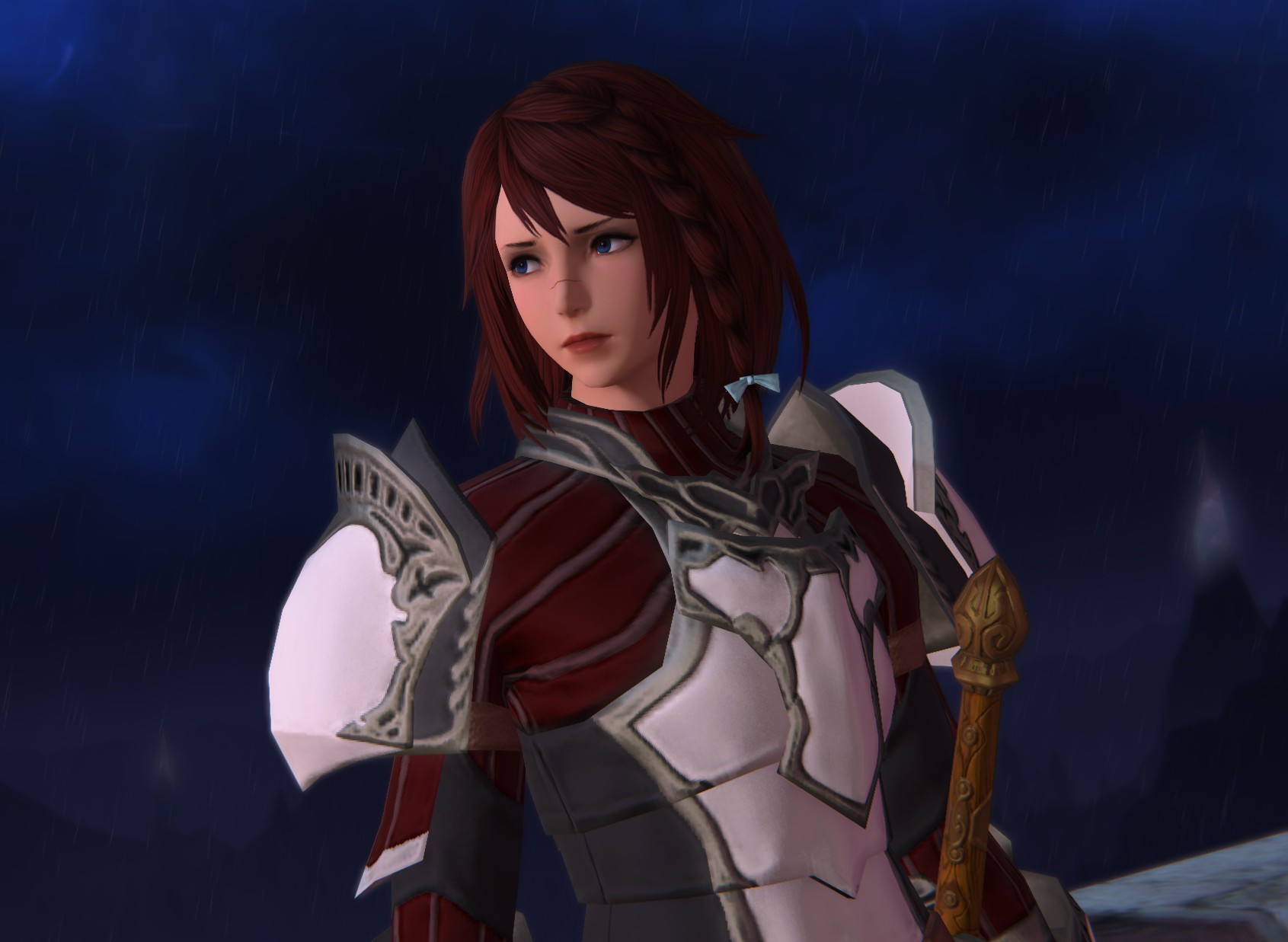>>554248419I don't get what you're asking for. Just click the button on your character sheet to show your weapon while sheathed, that's just the basic DRK weapon position.