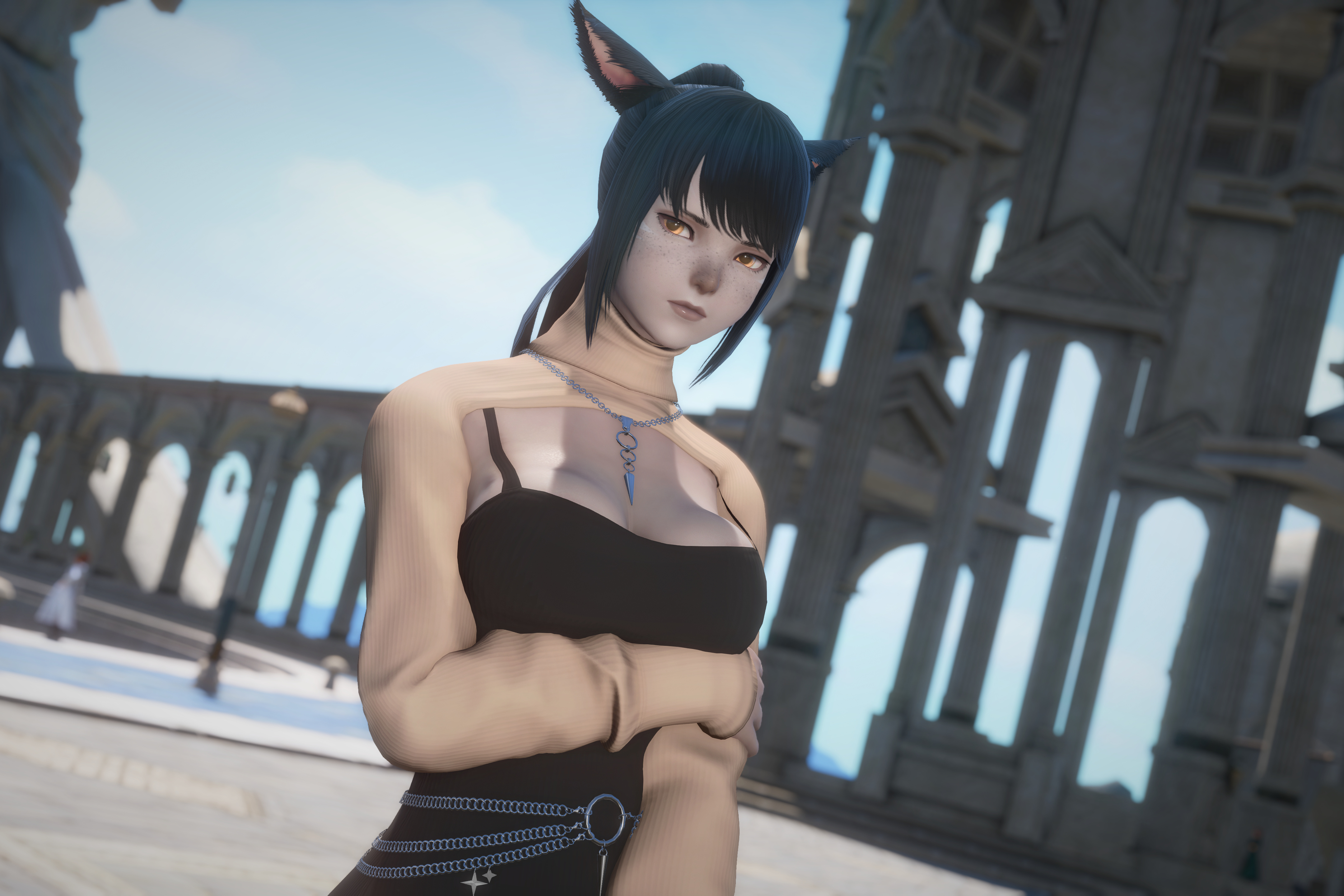 >>554257526like 2 weeks in I was already asking for gpose advice and looking into literal photography guides for lights and rules of three and finding links likehttps://www.sightsofeorzea.com/articleandhttps://www.xivmods.guide/na-dc-gpose-studios/then cosmetic mods and downloading all the tools like glamourer and brio and reshadetaking pictures is a big big big thing and made the leveling nicer where I could stop for like 15 minutes in a dungeon or quest place and just take a nice picture or reach a new level to buy new glam parts from eorzeacollectionlike this picture is the earliest pose I have saved