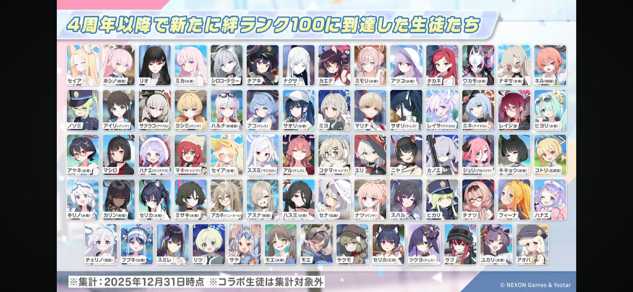 Previous Thread: >>554247337>Guides, Resources and useful links:https://rentry.org/bagguides>/bag/Circles/Clubs/Friends:https://rentry.org/holdingthebag>4koma, Manga, Side Content, PVs & Shortshttps://rentry.org/bacontent>>(JP) – JST>Banners:>1/7 After Maint – 1/20 10:59KisakiReijoYuuka (Track) (Limited)Mari (Track) (Limited)>5th Anniversary Livestream:Day 1: https://www.youtube.com/live/mdafTit0lTA – 1/17 10:00 – 18:00Day 2: https://www.youtube.com/live/kgCwc2EHDgY – 1/18 10:00 – 18:00>News:5th Anniversary Website: https://5th-anniversary.bluearchive.jpPatch notes: https://bluearchive.jp/news/newsJump/618>Events:The Senses Descend – 1/7 After Maint – 1/20 10:595th Anniversary Countdown Login Bonus Event – 1/13 4:00 – 1/20 3:59>Content:Grand Assault: ShiroKuro (Urban – Torment w/Special & Elastic Armor) – 1/14 11:00 – 1/20 3:59Limit Break Assault: The Fury of Set (Field – w/Light Armor) – 12/25 11:00 – 1/20 3:592x Scrimmage/Commission – 1/14 4:00 – 1/20 3:59>>(GLOBAL) – UTC>Banners:>1/13 After Maint – 1/27 1:59EriKanoe>News:Patch notes: https://forum.nexon.com/bluearchive-en/board_view?thread=3336837>Events:We Are the Occult Investigation Society! Ancient Spells and Mysteries – 1/13 After Maint – 1/27 1:59My Office: https://bluearchive.nexon.com/user/myoffice>Content:Total Assault: Perorodzilla (Field) – 1/20 2:00 – 1/26 18:59Joint Firing Drill (Shooting) – 1/27 2:00 – 2/2 18:59Limit Break Assault: Chokmah (Field – w/Special Armor) – 1/14 2:00 – 2/9 18:592x Bounty – 1/12 19:00 – 1/19 18:592x Account EXP – 1/16 19:00 – 1/18 18:592x Normal – 1/19 19:00 – 1/26 18:592x Account EXP – 1/23 19:00 – 1/25 18:592x Lesson/Scrimmage – 1/26 19:00 – 2/2 18:59