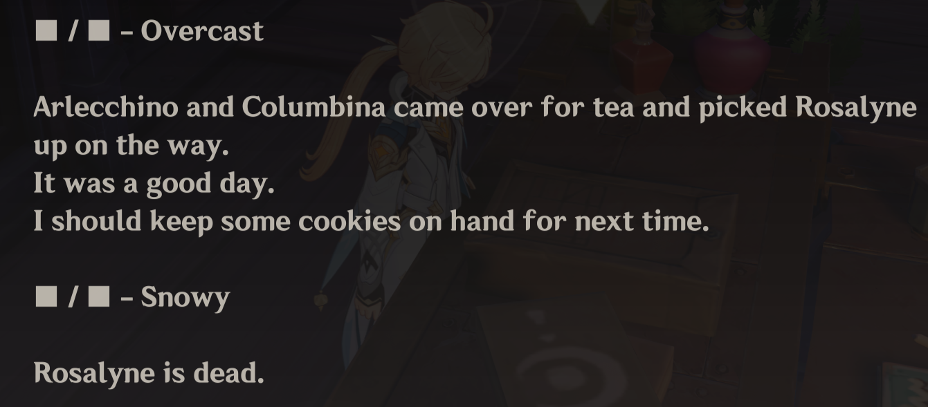 >>554274703Furina is the biggest pitybait in the game because her entire character is built around that. Columbina just has some suffering moments but she's not pitybait.