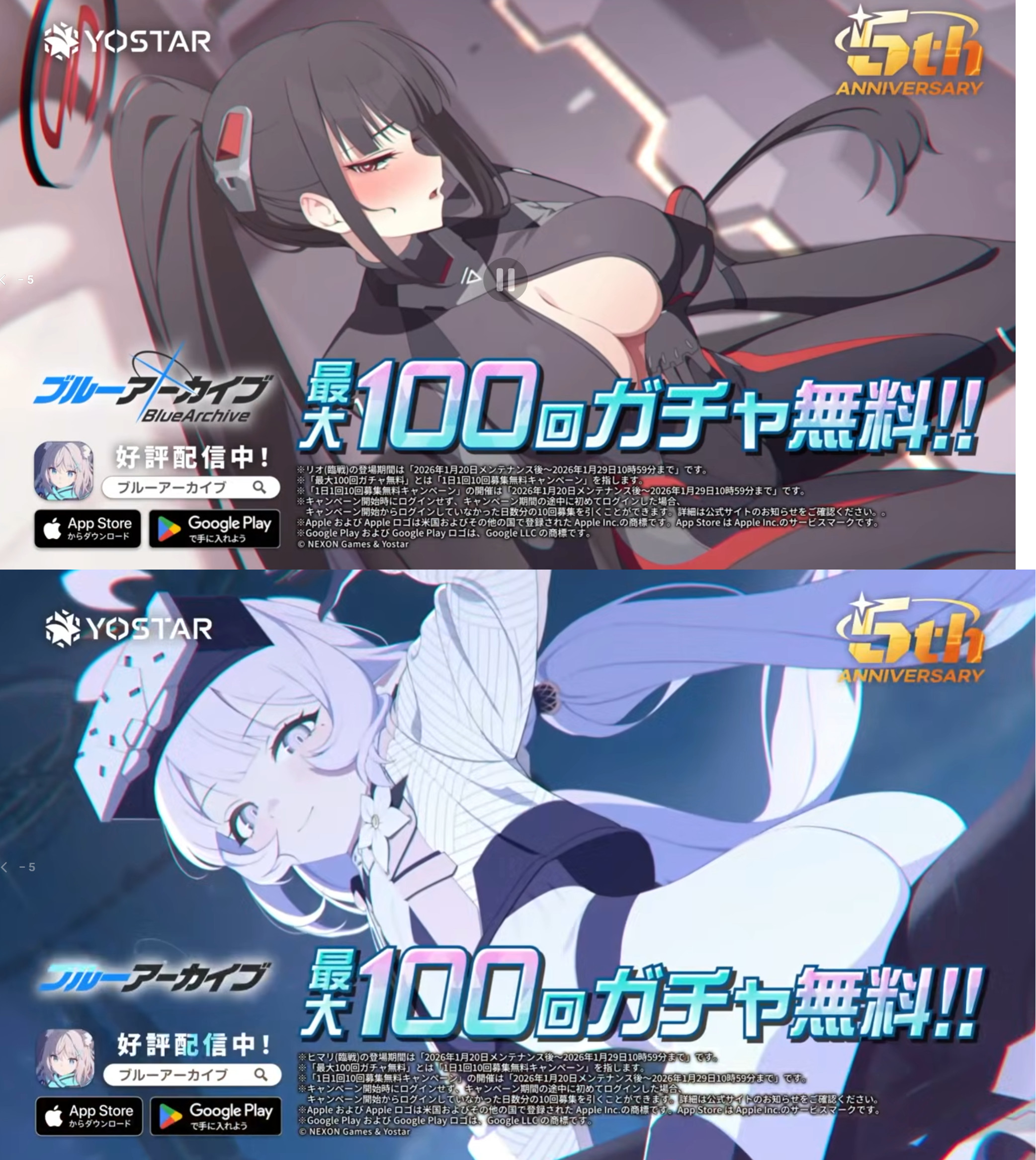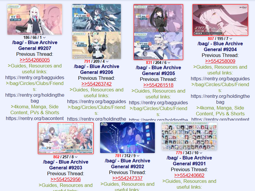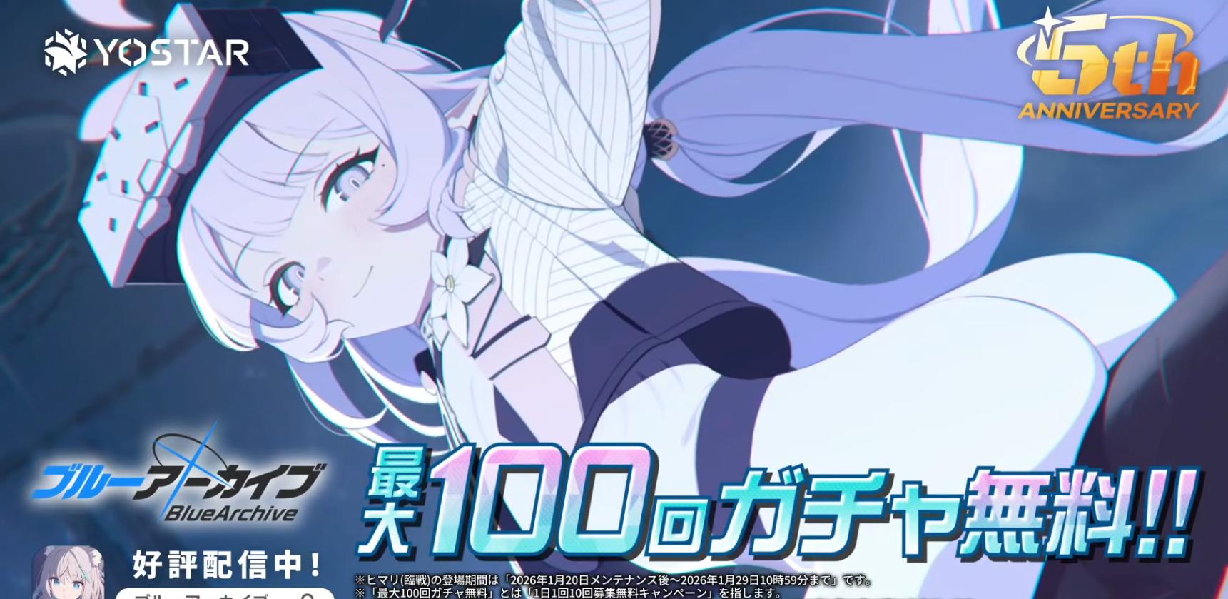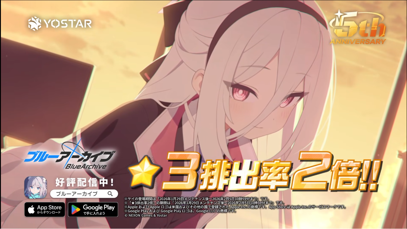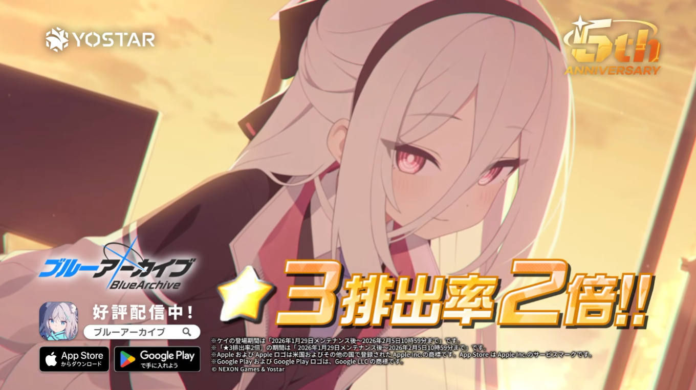 Previous Thread: >>554266005>Guides, Resources and useful links:https://rentry.org/bagguides>/bag/Circles/Clubs/Friends:https://rentry.org/holdingthebag>4koma, Manga, Side Content, PVs & Shortshttps://rentry.org/bacontent>>(JP) – JST>Banners:>1/7 After Maint – 1/20 10:59KisakiReijoYuuka (Track) (Limited)Mari (Track) (Limited)>5th Anniversary Livestream:Day 1: https://www.youtube.com/live/mdafTit0lTA – 1/17 10:00 – 18:00Day 2: https://www.youtube.com/live/kgCwc2EHDgY – 1/18 10:00 – 18:00>News:5th Anniversary Website: https://5th-anniversary.bluearchive.jpPatch notes: https://bluearchive.jp/news/newsJump/618>Events:The Senses Descend – 1/7 After Maint – 1/20 10:595th Anniversary Countdown Login Bonus Event – 1/13 4:00 – 1/20 3:59>Content:Grand Assault: ShiroKuro (Urban – Torment w/Special & Elastic Armor) – 1/14 11:00 – 1/20 3:59Limit Break Assault: The Fury of Set (Field – w/Light Armor) – 12/25 11:00 – 1/20 3:592x Scrimmage/Commission – 1/14 4:00 – 1/20 3:59>>(GLOBAL) – UTC>Banners:>1/13 After Maint – 1/27 1:59EriKanoe>News:Patch notes: https://forum.nexon.com/bluearchive-en/board_view?thread=3336837>Events:We Are the Occult Investigation Society! Ancient Spells and Mysteries – 1/13 After Maint – 1/27 1:59My Office: https://bluearchive.nexon.com/user/myoffice>Content:Total Assault: Perorodzilla (Field) – 1/20 2:00 – 1/26 18:59Joint Firing Drill (Shooting) – 1/27 2:00 – 2/2 18:59Limit Break Assault: Chokmah (Field – w/Special Armor) – 1/14 2:00 – 2/9 18:592x Bounty – 1/12 19:00 – 1/19 18:592x Account EXP – 1/16 19:00 – 1/18 18:592x Normal – 1/19 19:00 – 1/26 18:592x Account EXP – 1/23 19:00 – 1/25 18:592x Lesson/Scrimmage – 1/26 19:00 – 2/2 18:59