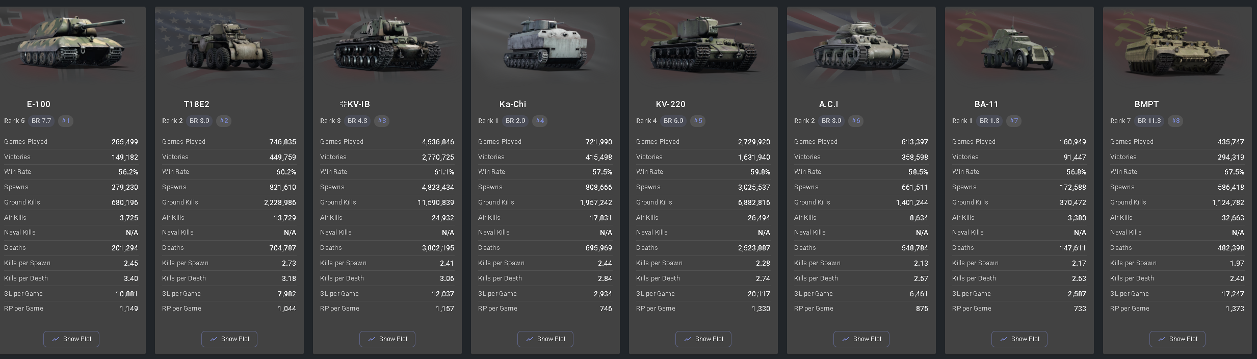 >>554425167Why would you have to aggregate the scores of the minor nation copy/paste with the ones from the major nation vehicles played by lobotomites? Seeing how the vehicle performs when used by people that didn't eat lead paint as a kid is the entire point.
