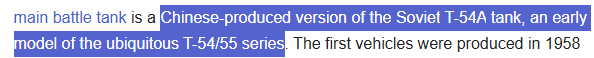 >>554396538Reminder Type 59 and 69 are T-54A and -54B respectively missing from the domestic tree.>inb4 Type 88By the time those were upgraded to the T-55AM standard, the standard in Russia was T-80U.