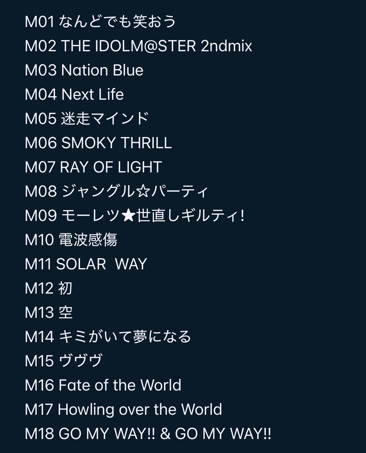 https://twitter.com/eriko_co_log/status/2012875629415321933DJ Eriko Nakamura's setlist