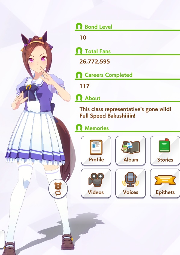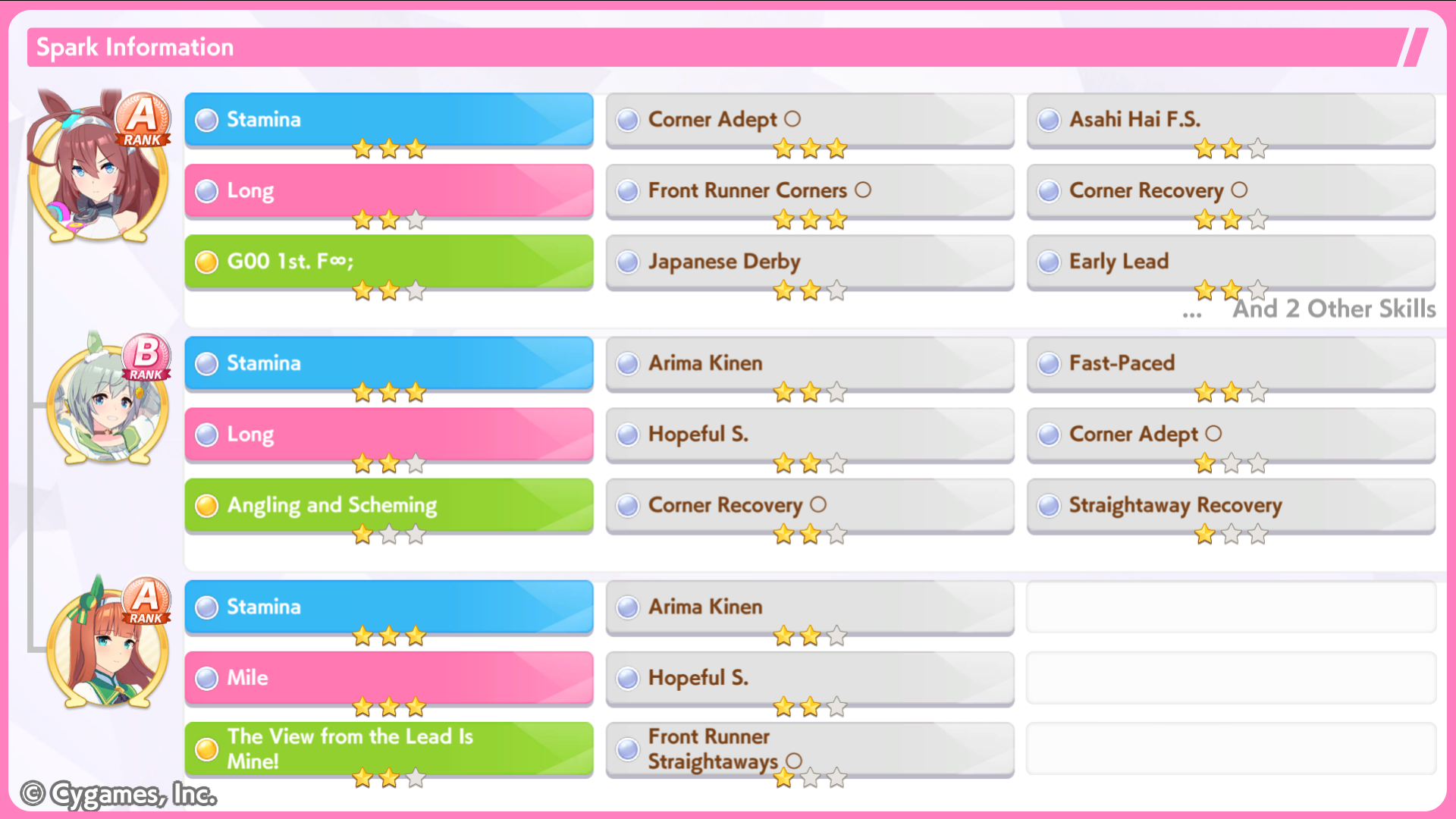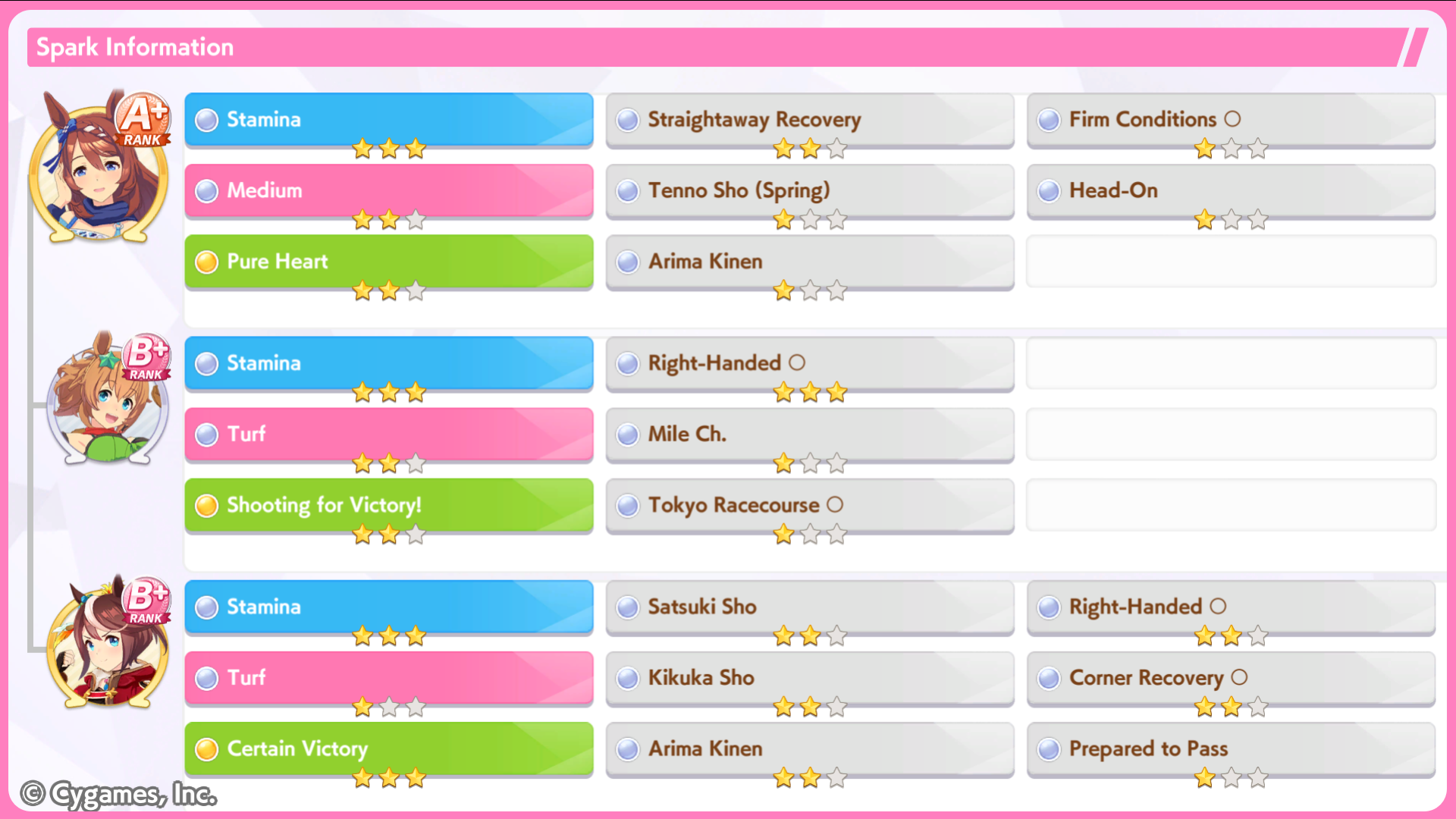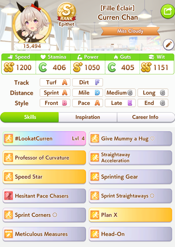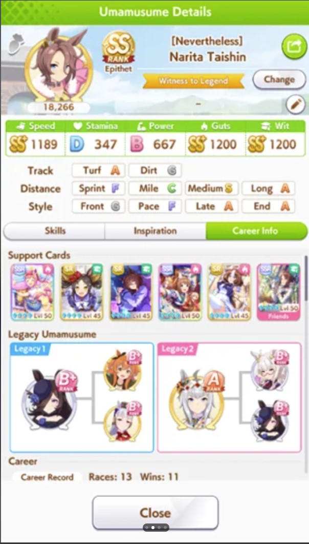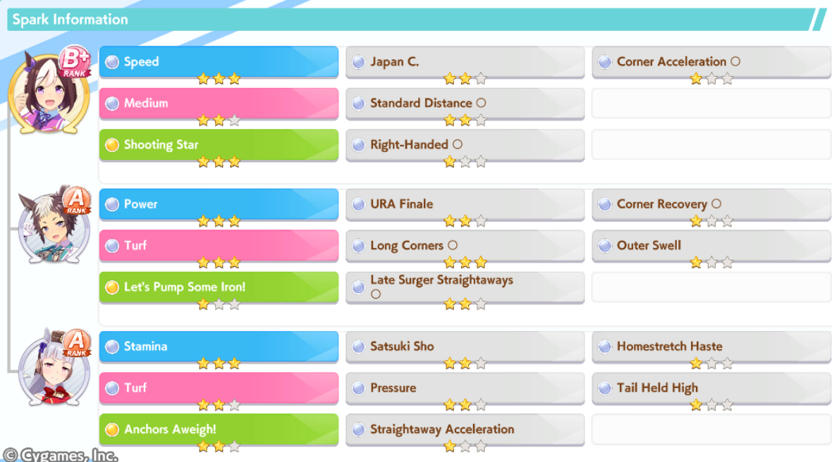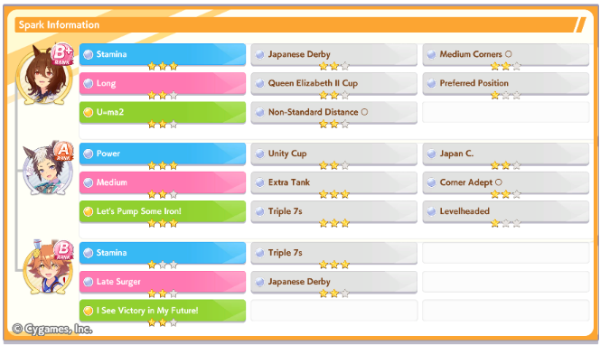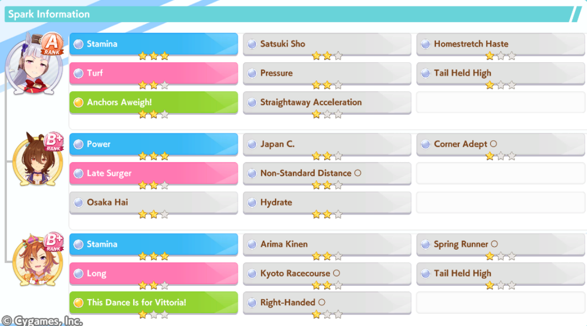 >>5543009833 speed 12 stam 6 long because stam parents refuse to dropif you had better stam sparks you could probably get away with clicking wit a lot more and you wouldnt need a highrollive gotten similar statlines but with 100+ more wit using borrow fine motion in my 3spd 2 wit deck but you gotta highroll speed a little morethis girl is so damn spark dependant