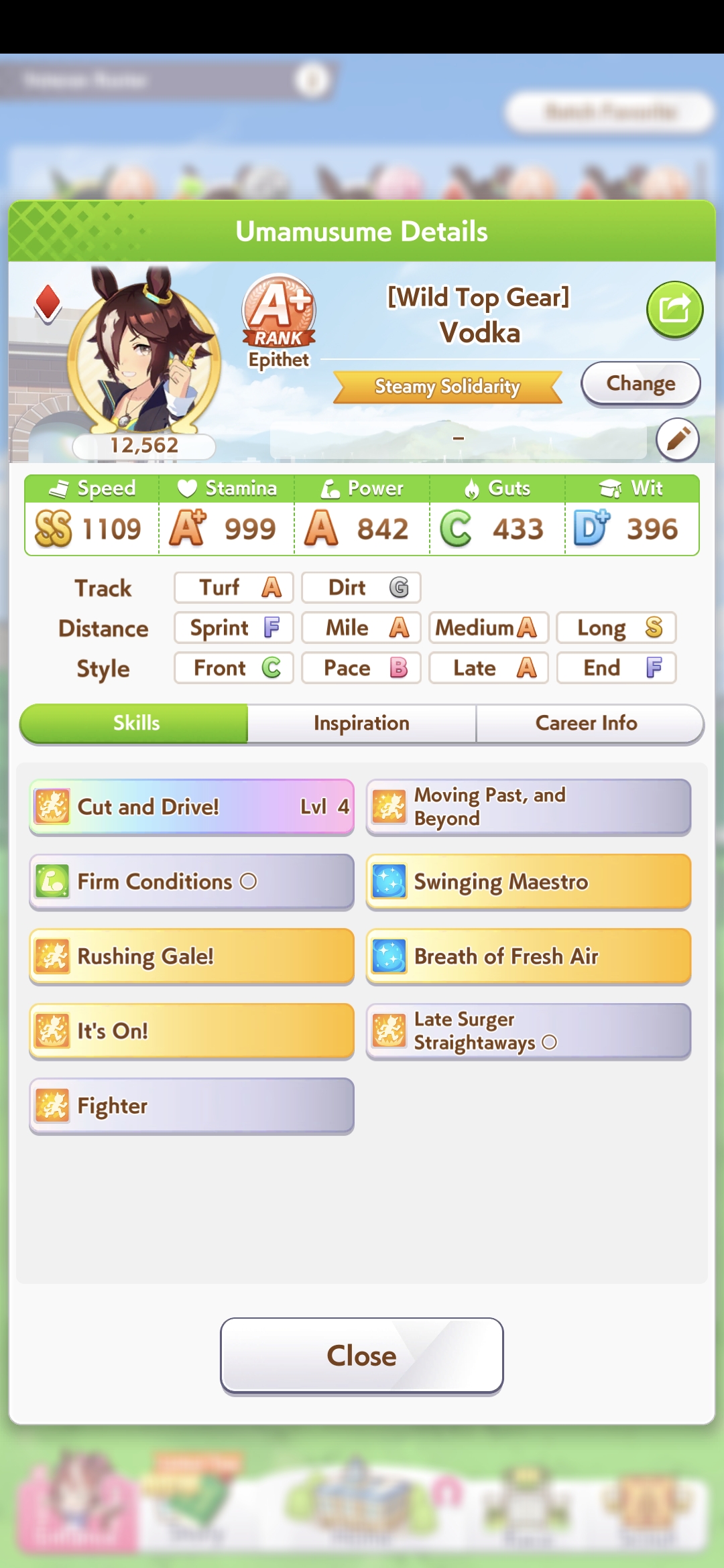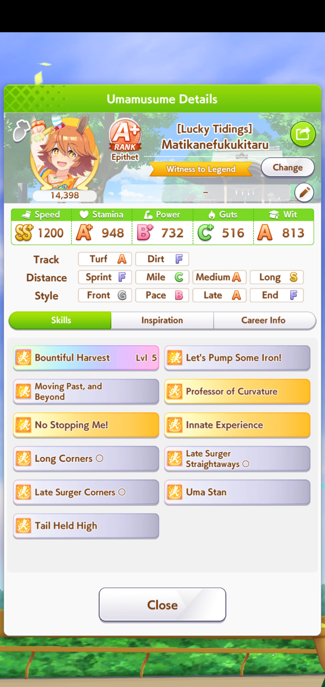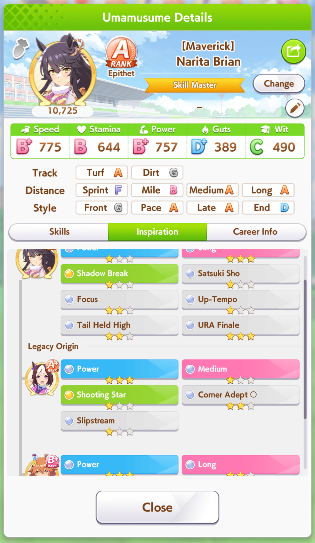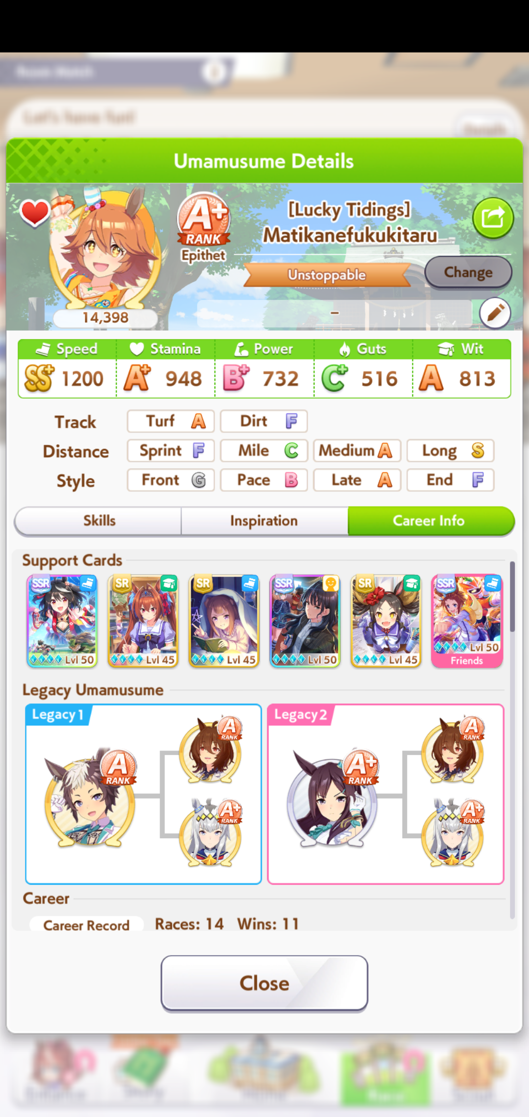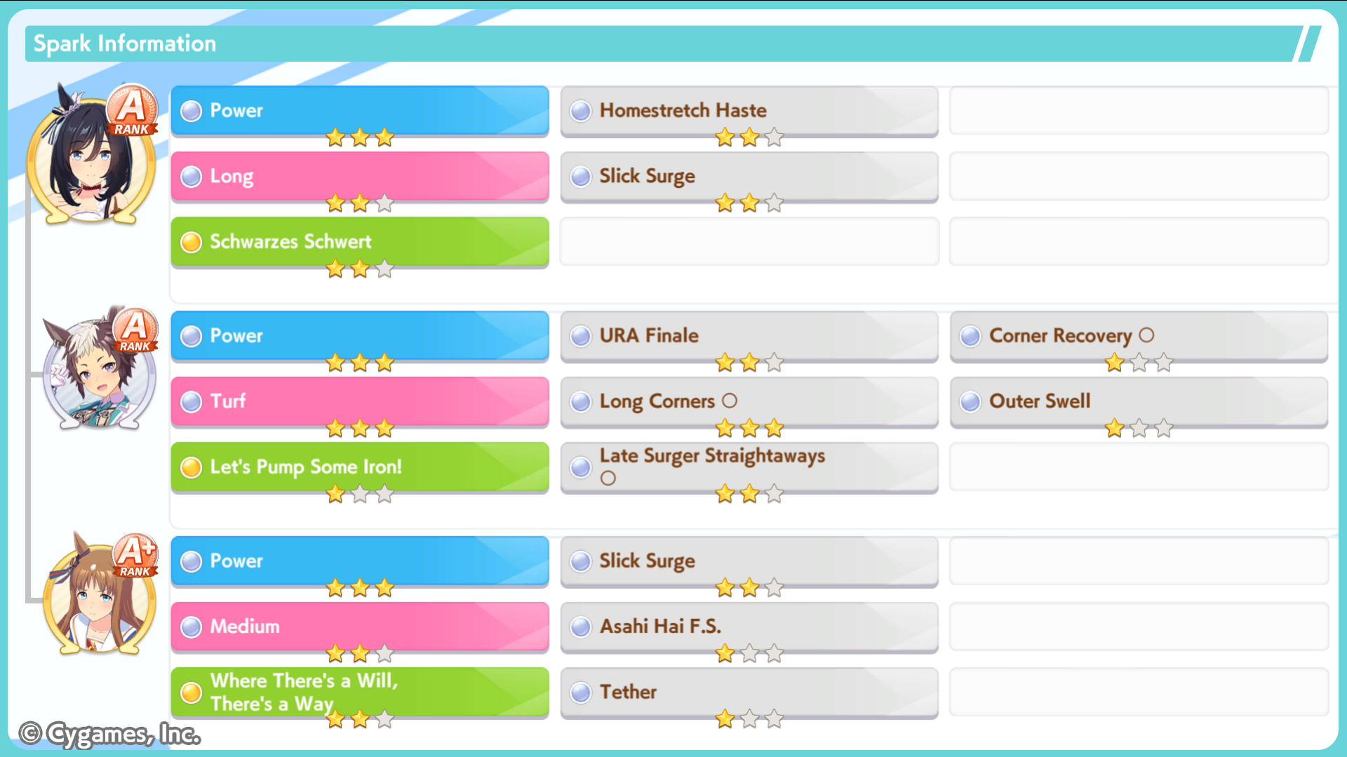 >>5543009833 speed 12 stam 6 long because stam parents refuse to dropif you had better stam sparks you could probably get away with clicking wit a lot more and you wouldnt need a highrollive gotten similar statlines but with 100+ more wit using borrow fine motion in my 3spd 2 wit deck but you gotta highroll speed a little morethis girl is so damn spark dependant
