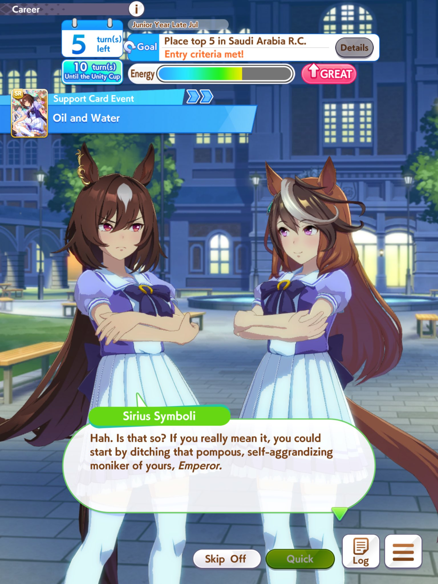 >>554317104You vastly underestimate how difficult it is to win a graded race, nevermind a G1. Uma Musume does a horrible job of portraying this both in game and in anime.