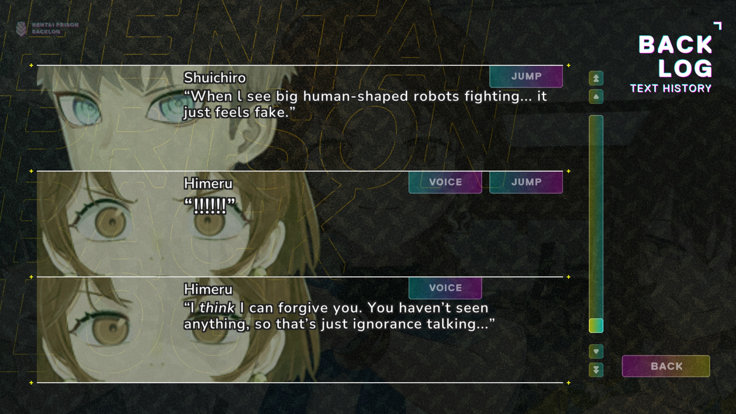 The galaxy background gag was funny. I like how qruppo makes use of moving sprites for their jokes.
