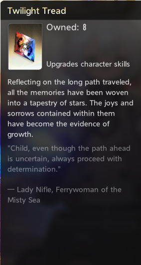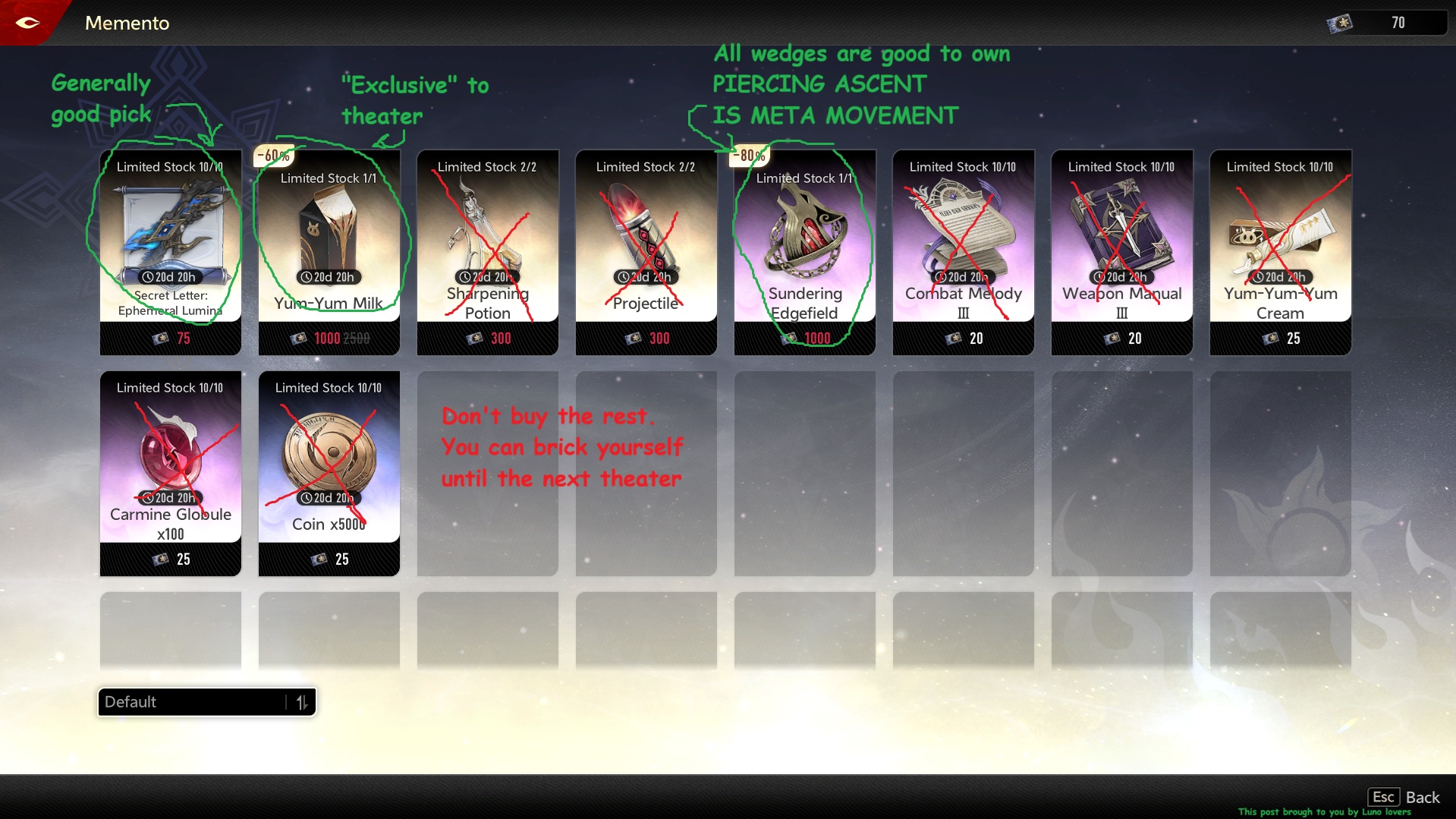 >>554503104>brick my account by wasting resources on irrelevant things,Worth to mention theater then. I took the chance to make an image for the new people. Sadly i didn't have all mods there to show.Don't buy the resources. Only milk, letters and wedges.Piercing Ascent is so good and so mandatory people want it nerfed. And honestly, kinda deserved.As was already mentioned, spend Twilight Tread wisely. It takes a lot of time to get them.>>554503104>whether this game's a gacha or a generous warframe reskinThe latter. Warframe with gacha skin.>should i be leveling up my characters and weapons using gold/paper materialsOpinion matter. Some people believe it is better to level them while afk farming.I think it's dreadfully slow and just levelled everyone with books. Either way, as long as you're aware and comfortable with your choice, use them away.Max level is 80>>554503104>any crazy mod intricacies like mutipliyingSomewhat. It's more of a matter with buffs. For example, Tabethe has a multiplicative skill damage bonus.Don't worry too much about it.Potatoes start scarce and end up fine.