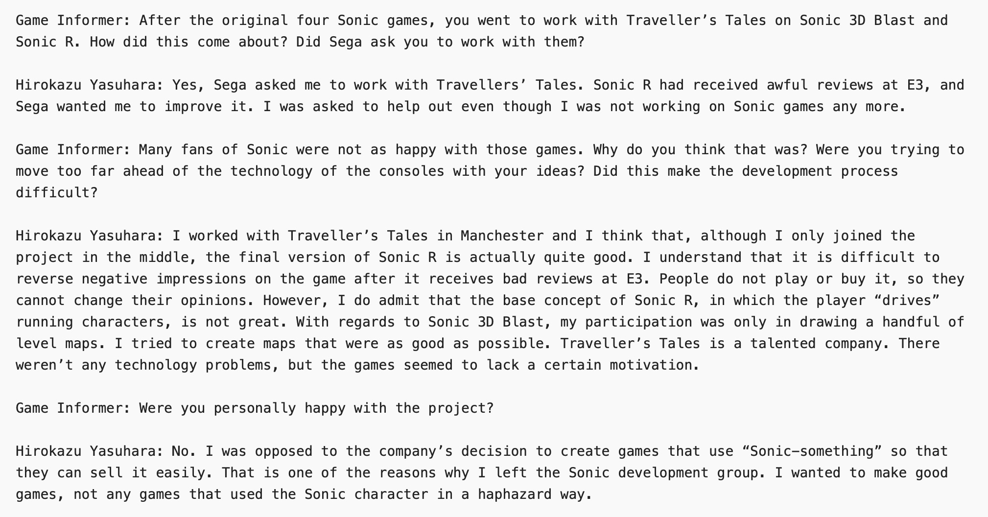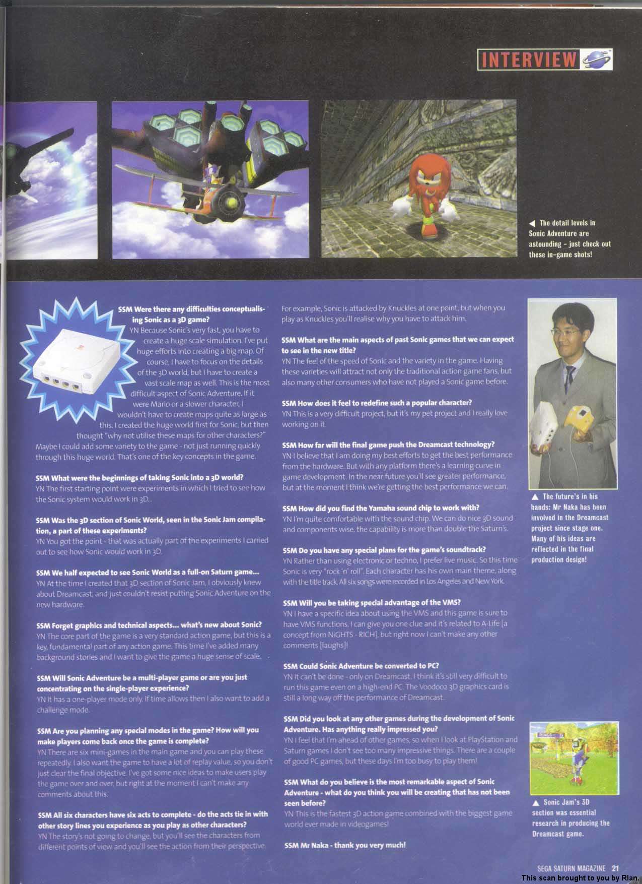 YUJI NAKA WORKED ON SONIC FAR LONGER THAN OHSHIMA