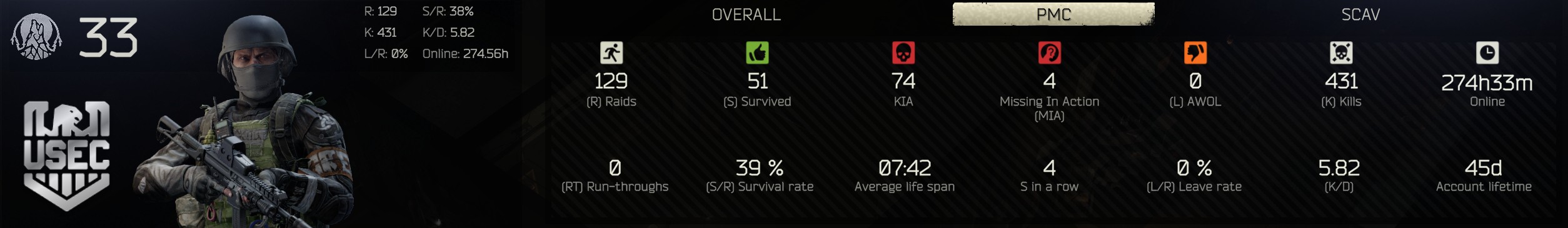 >>554347880Those are my PMC stats. I don't Scav.