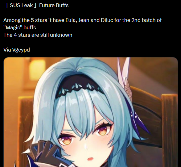 >>554341053It's obvious what they'll do. >LohenStandard Anemo Hexrei healer that is the actual AOE ATK B buffer.Gives 200 ATK to the active character and then 1k ATK or something to all hex party members.>NicoleGeneralist Hex off field damage dealer that is basically pyro fischl so she can work with Alice or Kirara in a probable burning team.