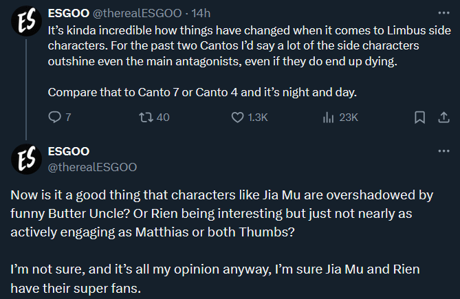 I wonder if canto 10 will continue focusing on small sinner teams.