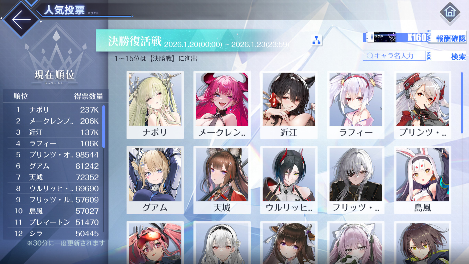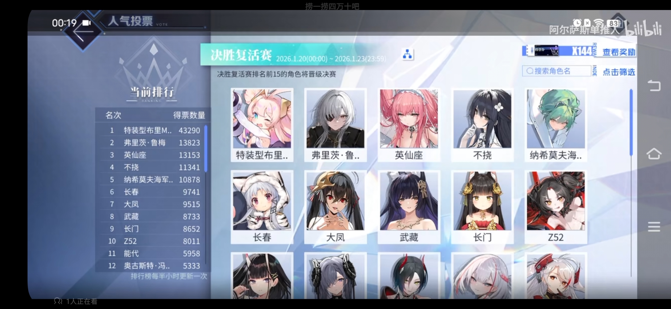 >>554437807Found this on BiliBili. Don't know if the top 15 are still the same, but this is how the Revival poll looked on CN earlier.Kneel to the UR Bulin, SKK.