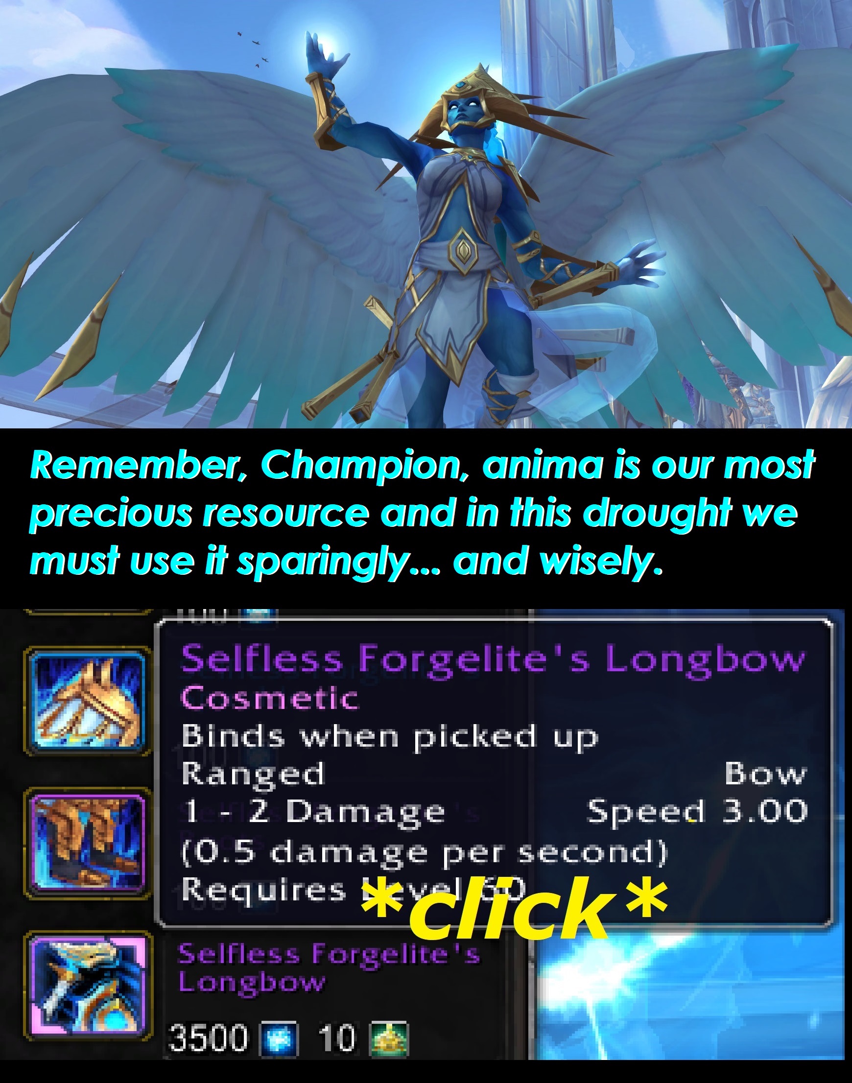 >>554339946>People just have bad memories about it because it was covid timesAnon people hated it because it had some incredibly awful and retarded features >eye of the jailer timegating >no mount in the maw >legendaries changing slots every patch forcing you to spend a hundreds of thousands of gold to red craft then >conduit energy >korthia >anima grind >taking 2 resets to swap covenants Granted a lot of these issues were addressed and fixed eventually but there was a lot of garbage bullshit that players got fed up with