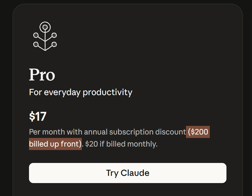 >>554394642That's the default pricing but you can choose $20/monthly >>554397556This is what AI xisters brag about being able to afford btw