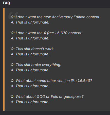 >>554362658it's funny how nexus threatens people with citing law on "illegal" stuff and then just allows crap like that. Like how they frequently cite anti-beastility laws on mods by authors they ban that habe zero to do with beastility but then they allow beastility if its gay beastilityThis is like putting literal freaks in charge of community morality.