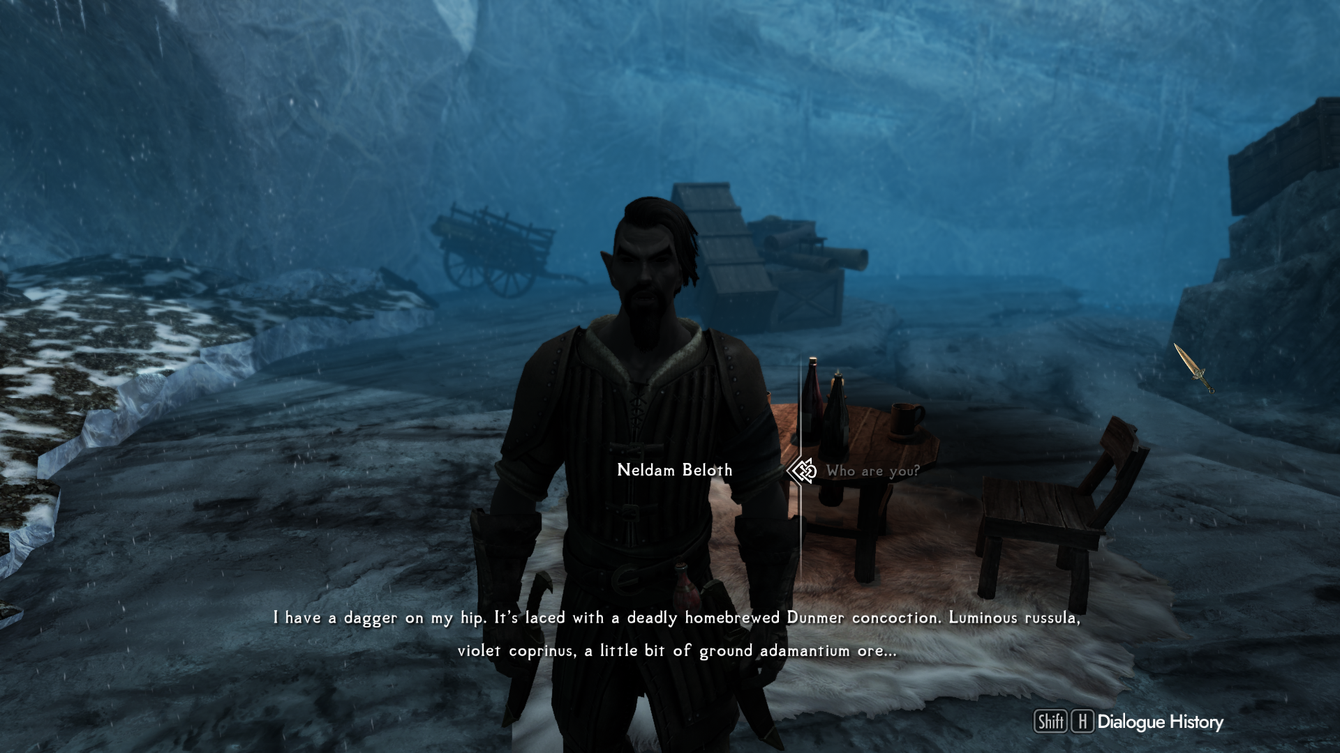Somebody is killing our skooma dealers on the road, and I want you to put an end to it. Here’s the information I’ve amassed so far. I’ve plotted dates and times on this Skyrim map, cross-referenced with all the travel information I’ve gathered on this spreadsheet. The evidence is quite clear. You can see the origin point where the activity stems from. That’s right—Jorrvaskr. It’s those goddamn Companions. Now, I’m not stupid, and I don’t think those sons of bitches are smart enough to come up with this idea on their own. They wouldn’t do anything for free, anyway. I give them credit for good business sense in that regard. But somebody paid them to do it, and I’m willing to bet that somebody is Maven. I want you to go to the Companions, find out who paid them off. They have one specific weak link you can target. Ria. She’s not very bright to begin with, and it shouldn’t take you but an hour or so of carefully applied kinetic coercion to wring the truth out of her. Once that’s done, report back your findings, and it will be a fine day with you around.