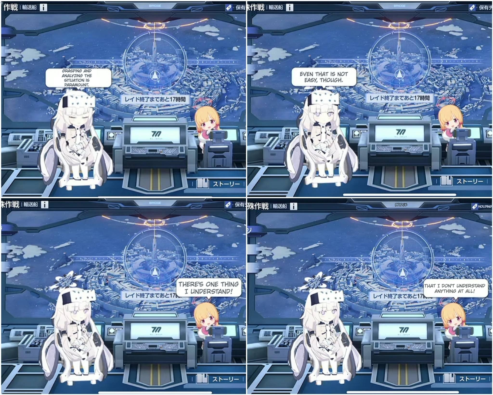 To start with negatives, I thought the story was pretty weak. It's not even really what the story is about or what happens, but just that there's so little to justify almost any of the story beats. The worst of them was the leap to researching and building the giant magic circle, but a lot of it felt poorly justified, particularly sensei's actions himself as the adult in the room. It's also strange that the academy that so thoroughly polices what can enter/exit is so nonchalant about sensei's visit, or his involvement in breaking the rules (or staying in the girls dorm after dark.)On the other hand, Blue Archive's biggest strength has always been it's characters and Wildhunt didn't disappoint. All four girls are fantastic, and their chemistry and interactions with each other were a treat. Eri and Kanoe exceeded my expectations, Tsumugi surprised me with how expressive she is, and Rena who I didn't expect to like much grew on me a lot by the end. I look forward to a point in the future when they become playable (hopeful).I was worried the academy might not fit in, but I think it works well and differentiates itself from other schools pretty well. It feels grounded, but around the edges you see just a hint of that kind of weird and unhinged quality that defines a lot of Blue Archive's setting. I'm curious if it will end up a event only school kind of like how Shanhaijing currently is or if it will eventually be pulled into the main story chapters, hopefully it will be.