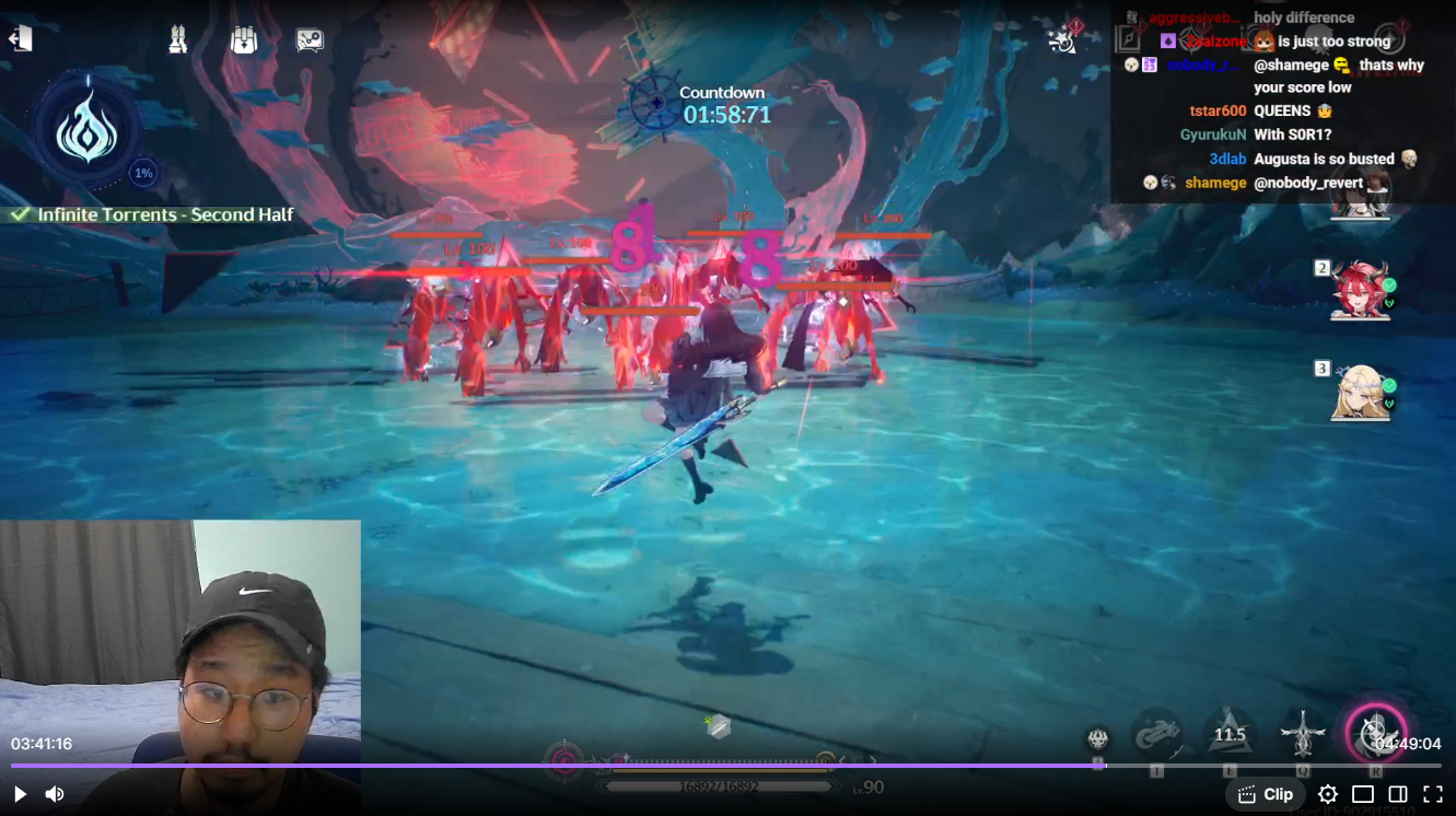 >>554368575>I mean you can choose not to use some parts of her kit, but you'll be sacrificing quite a bit of her dmg potential.Yeah I'm saying I hope there's some other rotation or something where not doing them is at least equally viable.>Honestly, playing all 4 unique animations once each per rotation doesn't seem that bad.I strongly disagree, your other two characters are ALSO going to have their cutscene liberations. You're looking at an absolute minimum of 10 seconds of cutscenes in a rotation that probably maxes out at 30 seconds long. That's a terrible ratio that's only going to get more annoying once I've already seen each cutscene 100 times.>>554368716Fuck. Goodbye my last cope...This is particularly annoying since the game already has dynamics to appeal to both skilled players and casual mashers. The former can slightly boost DPS and get more interesting gameplay by swapping to let long animations play out while they attack with another character. The casuals can sit there and watch the long cinematic animations play without losing that much damage (sometimes even getting more damage) thanks expiring-on-swap outro buffs. Kuro has a solution for this and they're just throwing it in the trash for the sake of making the animations slightly prettier.