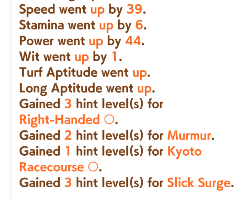 >>554393687+3 hints, 50 spec priority, 10 race bonus, initial wit, free wit + guts on event chain, free mood up + energy on random events