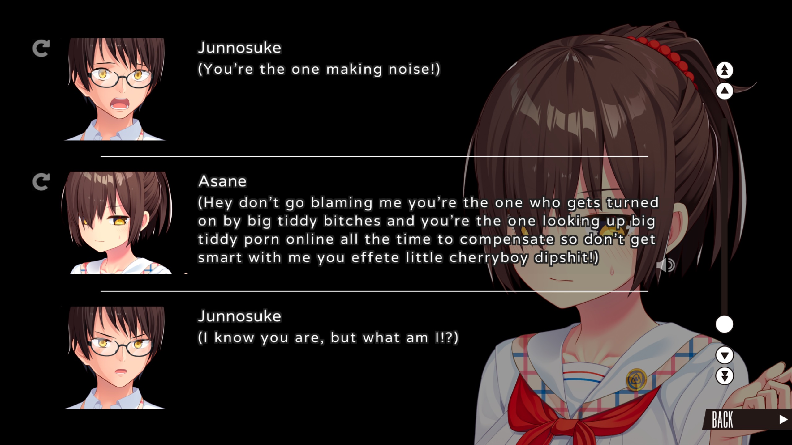 Well... I have mixed feelings about this improvement patch so far. This is a mistranslation, because ビッチ in Japanese (especially in this context) means "slut" but in the original translation they used "thot" (I checked a Youtube video). You just can't win, man.