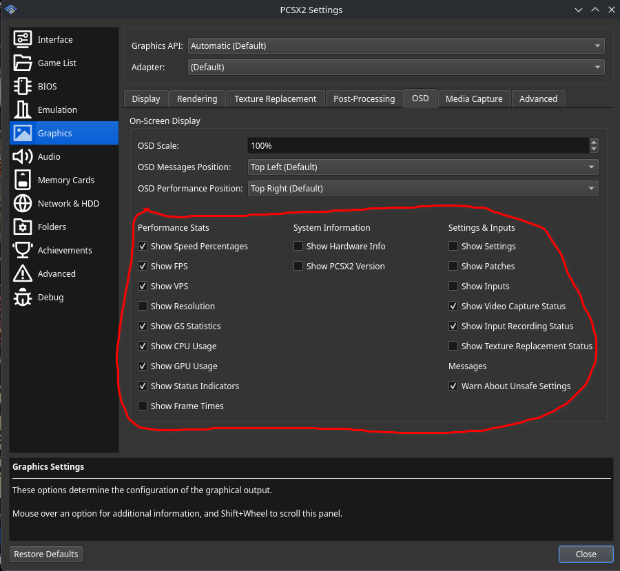 Go to Setting>Graphics>OSD