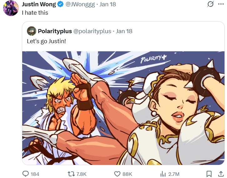 Let's never forget the day that a Street Fighter shill tried to say the only important thing in a fighting game is for tweets to go viral lmaooo