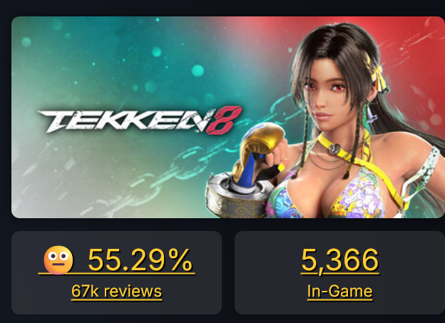 >>554461193They were like this during SFV as well. People back then hated SFV so they got away with it, now that SF is back people don't let them get away with their old antics anymore. Harada's entire strategy was riding on the failures of SFV (saying he wouldn't sell legacy characters as the Guile controversy was happening, promising Tekken 7 had NASA netcode etc) he tried the same thing with Tekken 8 as well by releasing that CGI trailer and pretending it was gameplay after Capcom announced the game would be coming to PS4.
