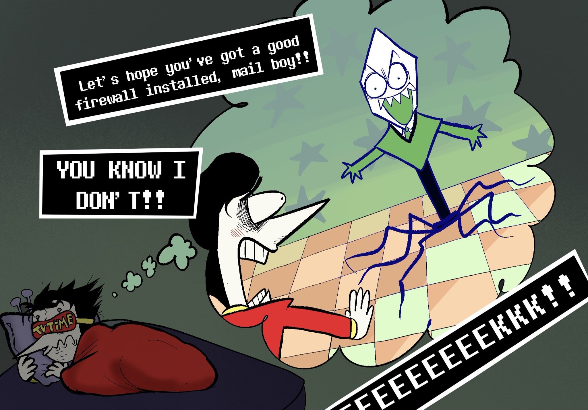 >>554418975>Queen is brought to Castle Town>the Gang think she's going to reform now that she has King and Lancer to keep her company>she ends up breaking King out of prison and building a Spade-ification machine that gives everyone her unique brand of madness>Castle Town becomes Cyber City 2.0Deltarune Animated Series can't come soon enough