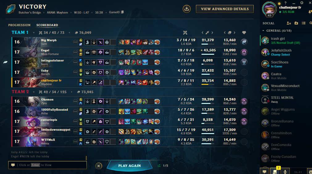 >most atrocious,dogshit unranked matchmaking where we get farmed on spawn at 15mins by premadeniggers (master stack vs random silvers) and we ff>enter aram mayhem>it's literally the same thijng>we lose first tower at 2 minutes almost every game>look at my leagueofgraphs profile>it's low winrate dayhow could i forget manhow could i even forgetevery single mondayevery single weekevery monthfor FOUR YEARS STRAIGHTMY GAMES SPECIFICALLY ON MONDAY ARE LOW QUALITY this however doesn't exist todaytoday i will log in and i will hitlerstomp every game because uuggh... it's not a pattern goy stop noticingthis however will become a problem once again on wednesday that is also a low winrate daydamn brow3hat an organic experience!FOR YEARSFOR FOUR YEARS STRAIGHTIT'S NOT A PATTERN BRO IT'S JUST COINCIDENCE